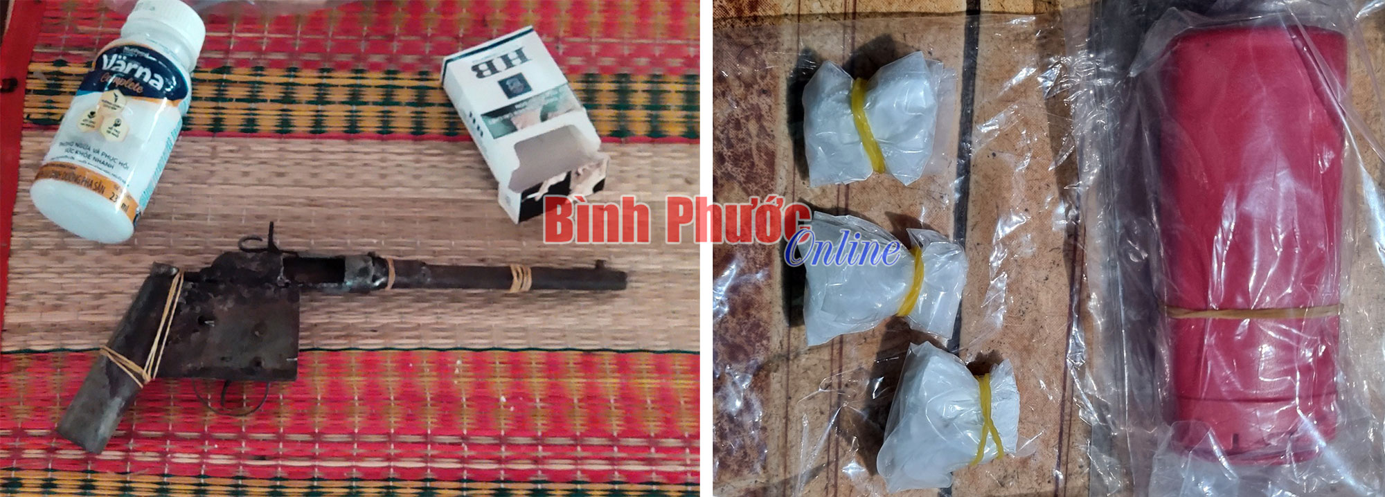 Vào ngày 15-3, tại thôn 4, xã Phước Sơn, tổ công tác Công an huyện Bù Đăng phối hợp với Công an xã Phước Sơn bắt quả tang đối tượng Lương Văn Ái đang có hành vi “Tàng trữ, mua bán trái phép chất ma túy”. Tang vật thu giữ gồm: 7 gói giấy và 2 gói ni-lon bên trong chứa chất bột màu trắng, 1 gói ni-lon bên trong chứa tinh thể màu trắng, 1 gói ni-lon bên trong chứa thảo mộc khô, 1 gói ni-lon chứa chất màu đen, 1 cân tiểu ly và 2,554 triệu đồng. Lương Văn Ái khai nhận các gói chất bột màu trắng và tinh thể màu trắng, chất màu đen và thảo mộc khô đều là ma túy. Trong quá trình khám xét Lương Văn Ái, tổ công tác còn phát hiện và thu giữ 1 khẩu súng, 4 viên đạn.