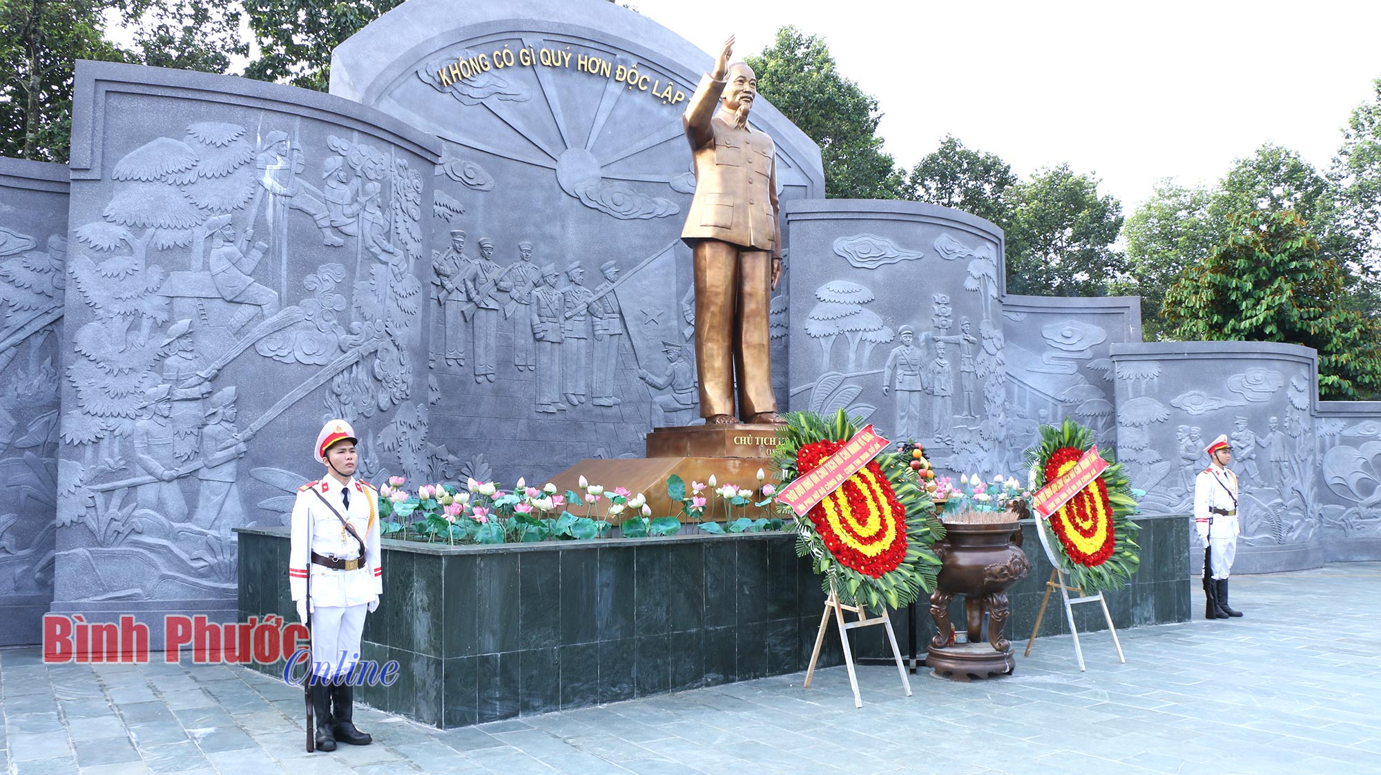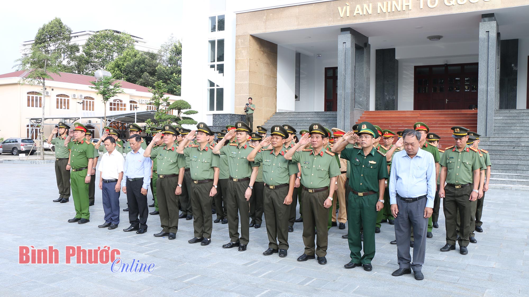 Đại diện Công an 6 tỉnh và các đại biểu dự lễ dâng hương, dâng hoa tượng đài Chủ tịch Hồ Chí Minh trong khuôn viên Công an tỉnh