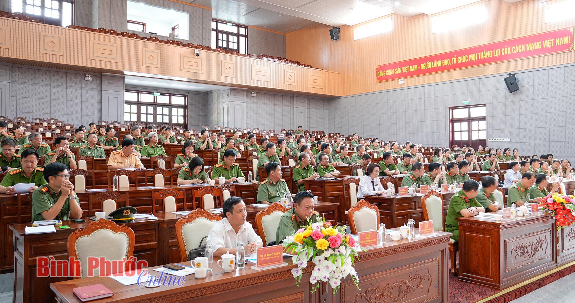 Đại tá Dương Văn Mạnh, Phó Bí thư Đảng ủy, Phó Giám đốc Công an tỉnh Bình Phước thông qua báo cáo tổng kết phong trào thi đua