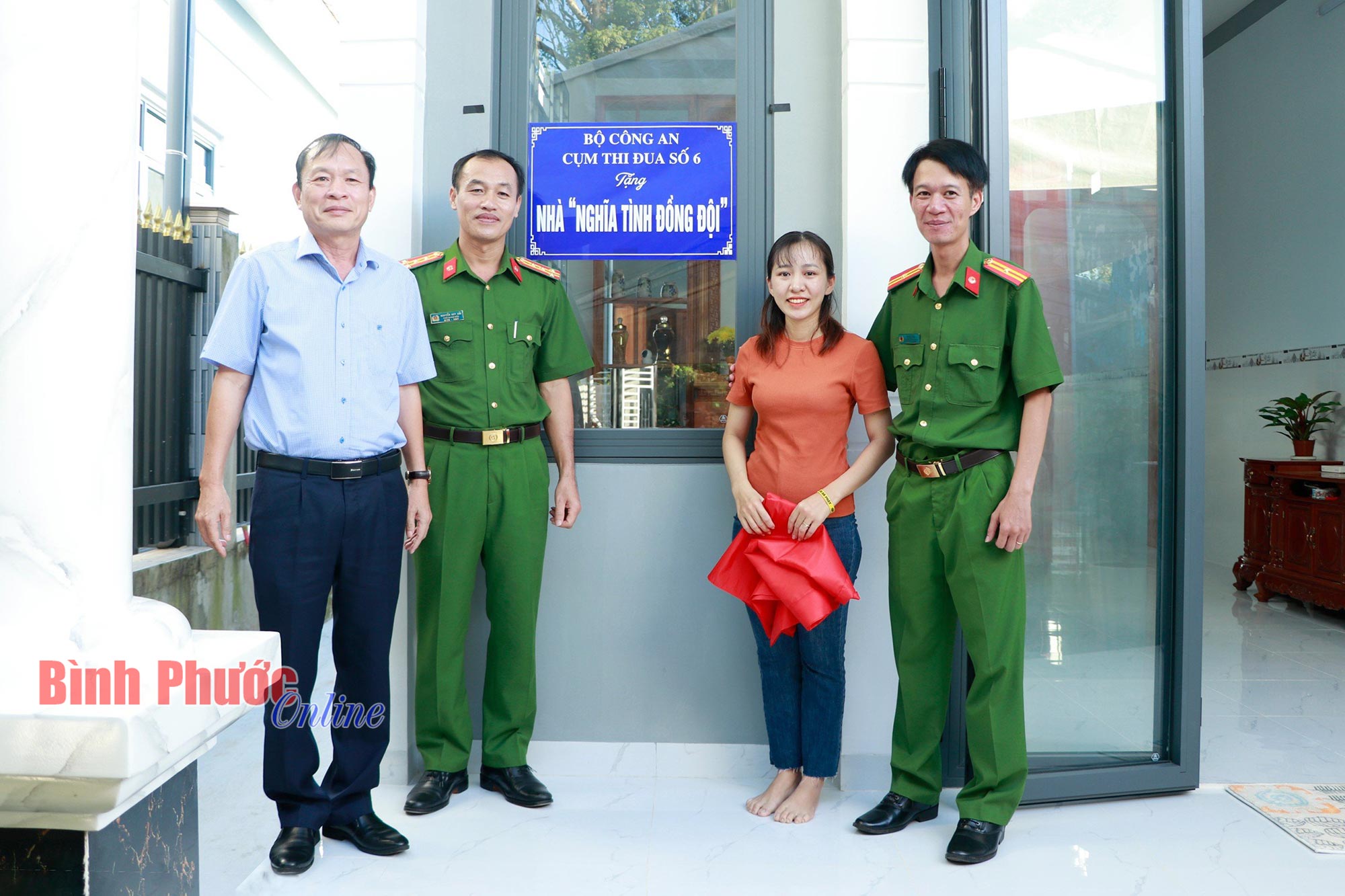 Đại tá Nguyễn Huy Hải, Phó Giám đốc Công an tỉnh và lãnh đạo huyện Hớn Quản trao nhà “Nghĩa tình đồng đội” cho gia đình Thiếu tá Bùi Văn Hải, Trưởng Công an xã Phước An, huyện Hớn Quản