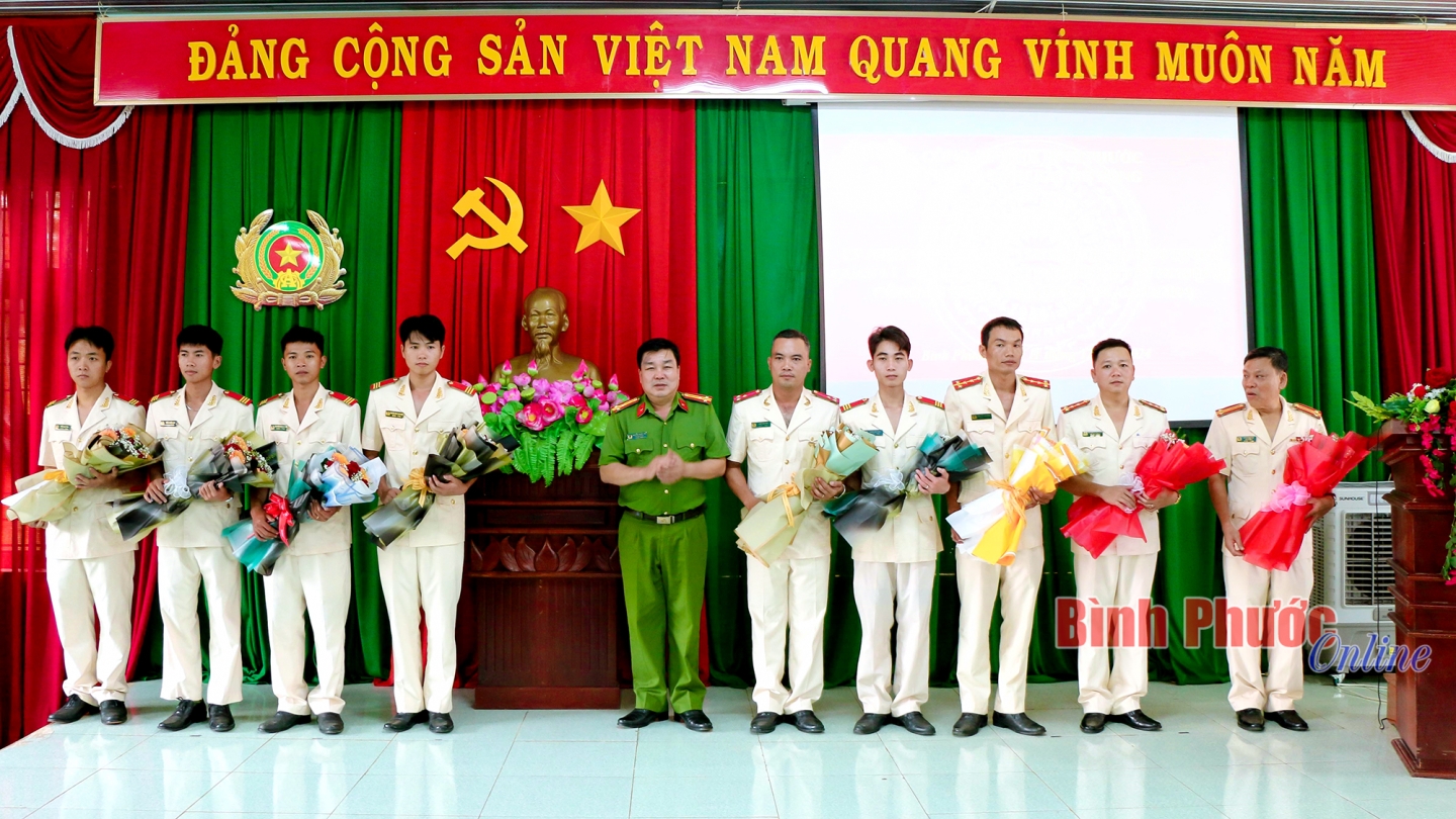Thượng tá Nguyễn Phước Chí, Trưởng Phòng Cảnh sát cơ động tặng hoa chúc mừng các đồng chí Đội quản lý, sử dụng động vật nghiệp vụ