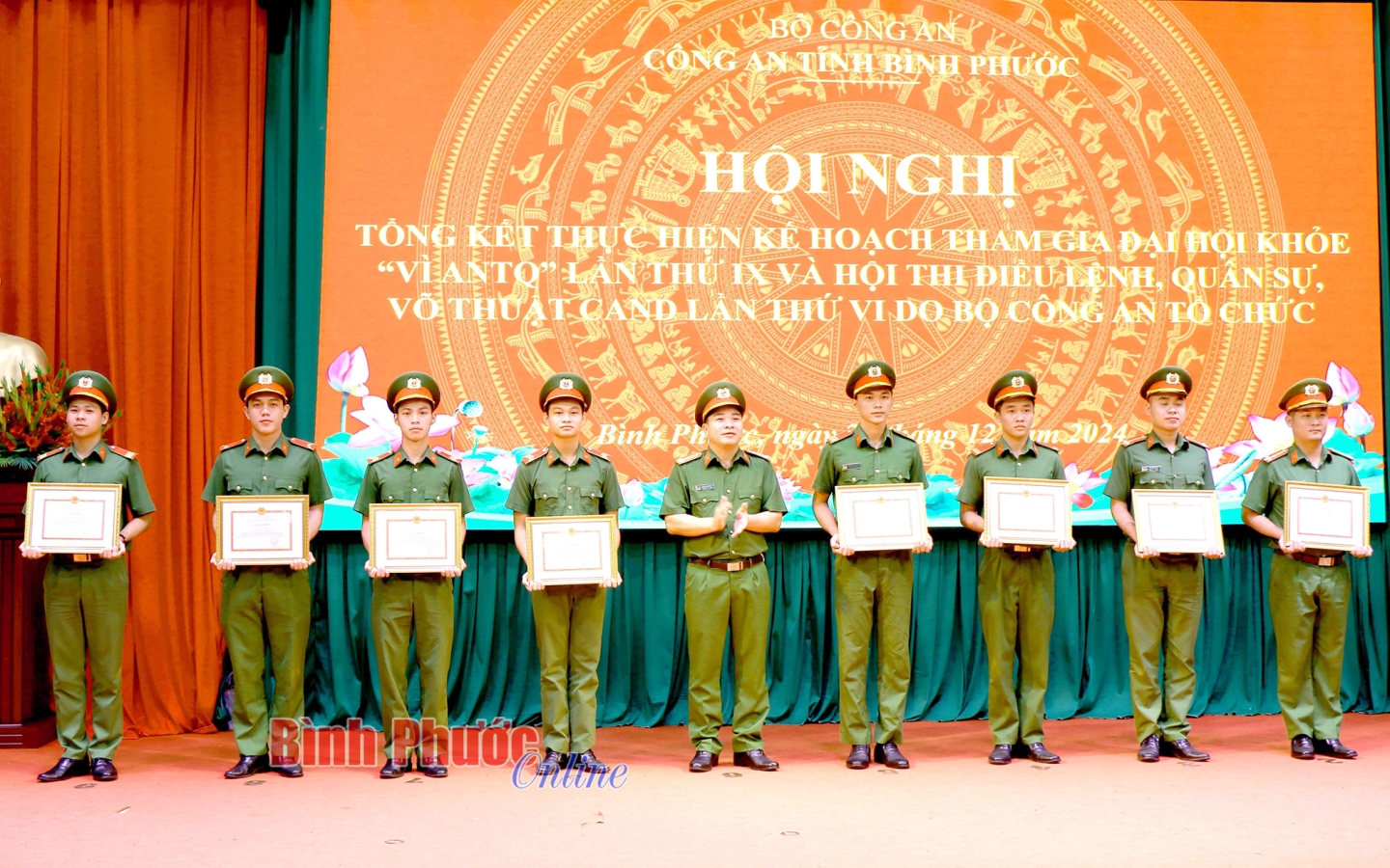 Tại Đại hội khỏe “Vì an ninh Tổ quốc”, Công an tỉnh Bình Phước tham gia 11/35 nội dung. Kết quả, môn chạy ứng dụng đoạt 2 huy chương bạc đồng đội, 2 huy chương đồng cá nhân, 2 giải khuyến khích cá nhân. Ngoài ra, các môn thi khác cũng đạt giải cao.