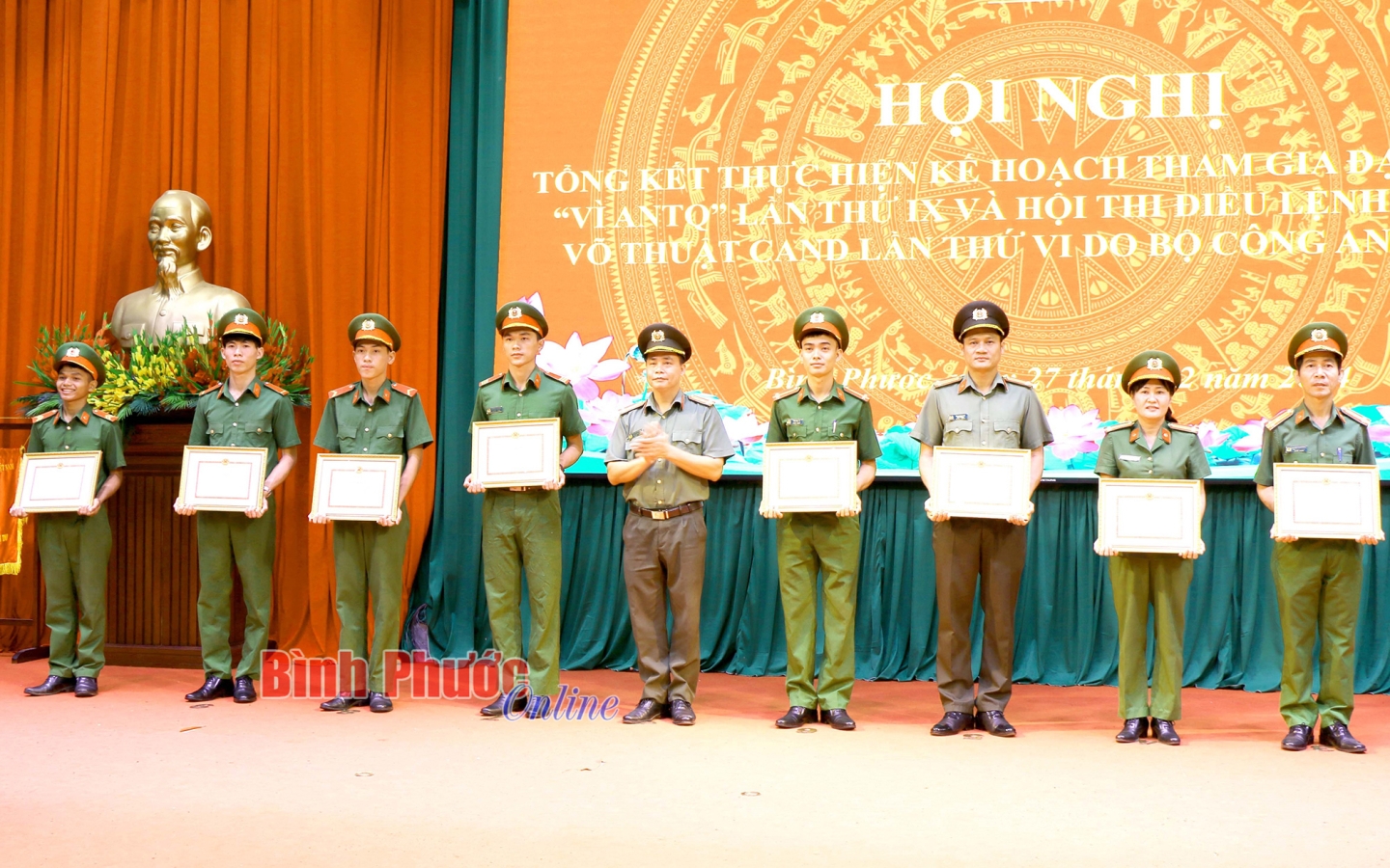 Kết quả, Công an tỉnh Bình Phước đoạt giải ba toàn đoàn. Trong đó, tại nội dung thi điều lệnh, võ thuật, đơn vị đoạt giải ba đồng đội phần thi chiến thuật; giải ba đồng đội phần thi nghi lễ CAND; giải ba đồng đội phần thi điều lệnh đội ngũ; giải ba đồng đội phần thi duyệt đội ngũ; giải ba đồng đội phần thi đồng diễn. Ở nội dung quân sự, đoạt giải nhất, nhì cá nhân vượt vật cản; giải nhất đồng đội vượt vật cản; giải nhì cá nhân phần thi bắn súng MP5; giải nhì cá nhân phần thi bắn súng ngắn nữ.