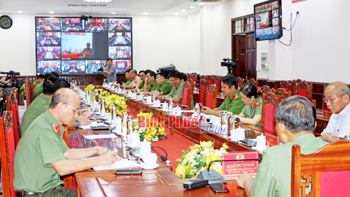 Đại tá Dương Văn Mạnh, Phó Giám đốc Công an tỉnh chủ trì hội nghị tại điểm cầu Bình Phước.