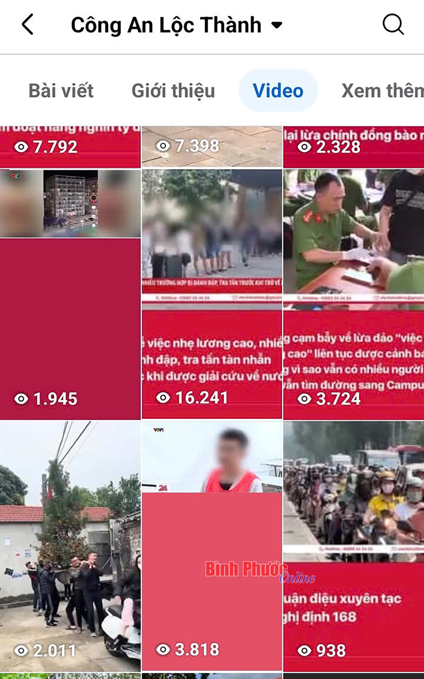 Trang facebook Công an Lộc Thành thường xuyên đăng tải video cảnh báo thủ đoạn của các loại tội phạm, thu hút hàng ngàn lượt xem