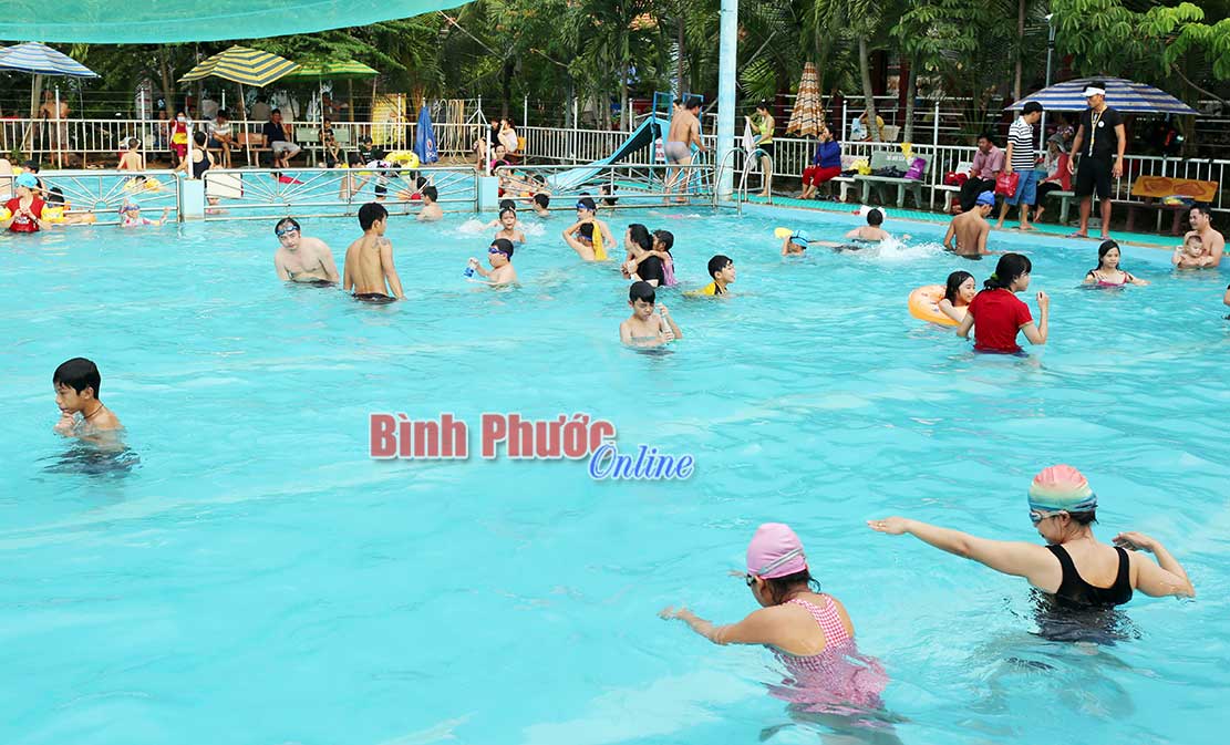 Toàn tỉnh hiện chỉ có 2 doanh nghiệp hoạt động kinh doanh trong lĩnh vực TDTT (môn bơi lội). Trong ảnh: Người dân tập luyện thể thao dưới nước ở hồ bơi Tân Bình, phường Tân Bình, TP. Đồng Xoài (ảnh minh họa) - Sỹ Hòa