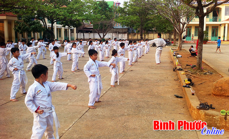Học sinh Trường tiểu học Phú Riềng A hăng say tập võ taekwondo sau giờ học văn hóa
