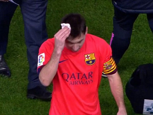 Messi bị ném trúng đầu ở trận Barcelona thắng Valencia cuối tuần trước. (Nguồn: AP)Bài báo viết: “Thêm hoặc bớt một chiếc thẻ vàng là không quan trọng gì với Messi. Nhưng không phải vì thế mà chúng ta có thể làm ngơ trước nạn nhân của một sự xúc phạm. Dù đây chỉ là một vụ nhỏ, nhưng nó cần được nhìn nhận sâu sắc để tố cáo sự tồi tệ của thể chế bóng đá Tây Ban Nha.
