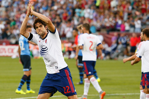 Kaka trong màu áo đội Các ngôi sao Mỹ đá giao hữu với Tottenham vào ngày 29-7 - Ảnh: Reuters