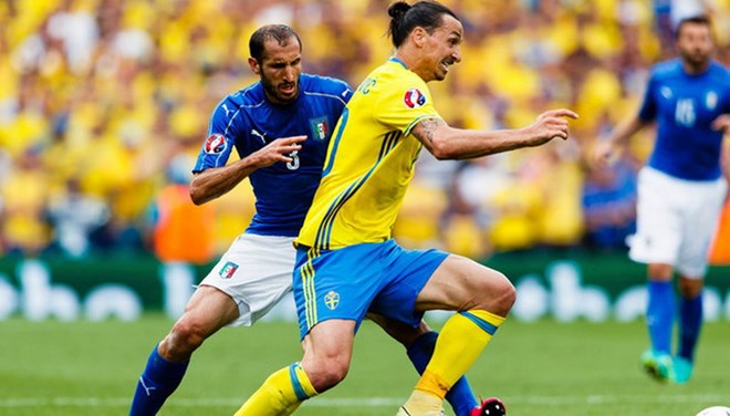 Ibra được bảo vệ khi anh 'bất lực' trước Italy. (Nguồn: AP)Không Ibra, Thụy Điển chẳng có gì đáng xem