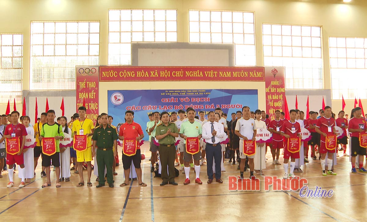 Giải vô địch các câu lạc bộ bóng đá 5 người tỉnh Bình Phước năm nay quy tụ 23 đội bóng với 275 cầu thủ đến từ các huyện, thị xã, thành phố, lực lượng thuộc Bộ Chỉ huy Quân sự tỉnh, Công an tỉnh.