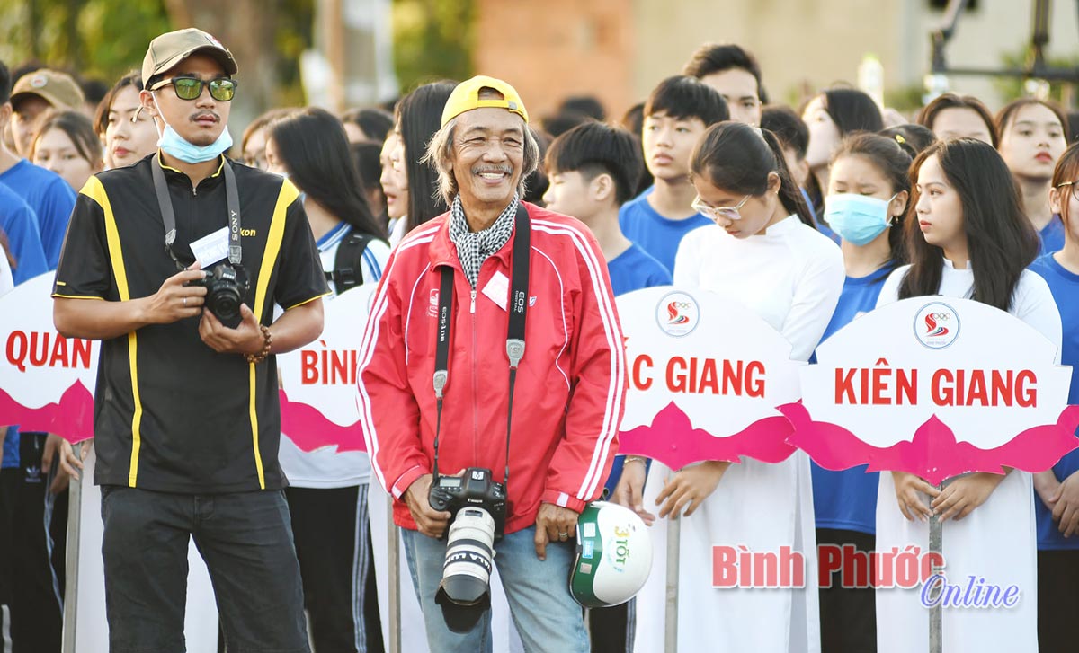 Nhà báo Dư Hải (áo đỏ) tác nghiệp tại Giải vô địch toàn quốc việt dã leo núi “Chinh phục đỉnh cao Bà Rá” năm 2021