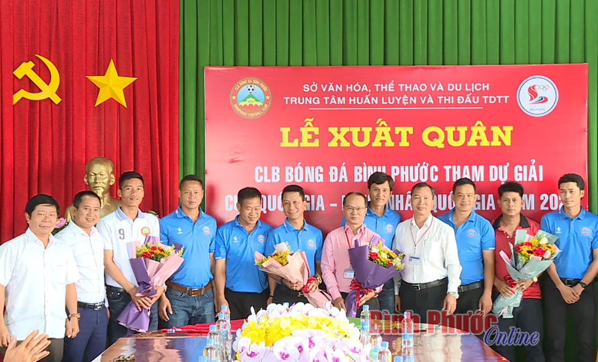Ông Trần Thế Anh, Phó giám đốc Sở Văn hóa - Thể thao và Du lịch tỉnh Bình Phước giao nhiệm vụ cho đội bóng tại lễ xuất quân mùa giải mới