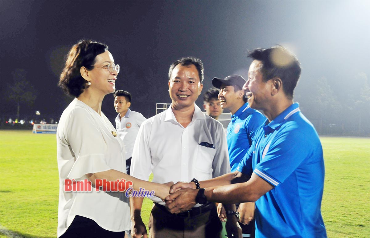 Kết thúc trận đấu, lãnh đạo tỉnh đã xuống sân thăm hỏi và động viên các cầu thủ, ban huấn luyện đội nhà