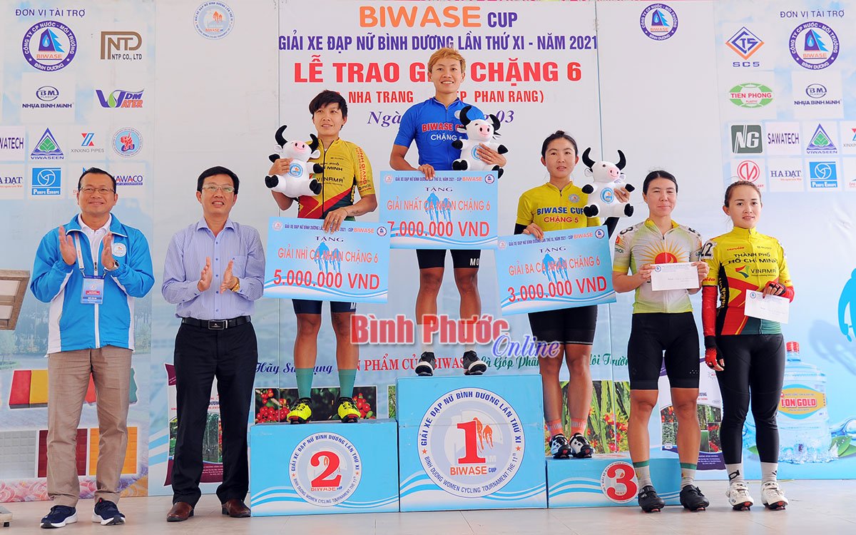 Ban tổ chức trao giải cho các tay đua đạt thành tích tốt của chặng 6