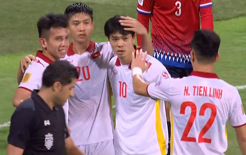 Sang hiệp 2, huấn luyện viên Park Hang-seo đã đưa Quang Hải vào thay Tiến Linh. Phút thứ 48, từ một pha đập nhả cùng Hoàng Đức, Quang Hải tung cú dứt điểm rất nhanh, nhưng đã bị thủ môn Souvannasangso bắt gọn.