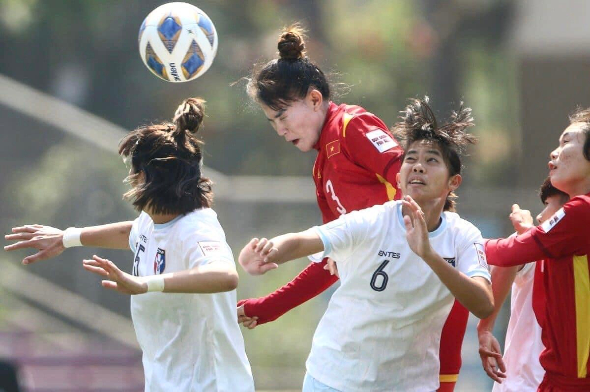 Đội tuyển bóng đá nữ Việt Nam chiến thắng trước nữ đội tuyển nữ Đài Loan 2-1 ở trận play off cúp bóng đá nữ châu Á. Bàn thắng xuất phát từ quả phạt góc của Tuyết Dung ở phút thứ 7, trung vệ Chương Thị Kiều tham gia tấn công bật cao đánh đầu ghi bàn 1-0.