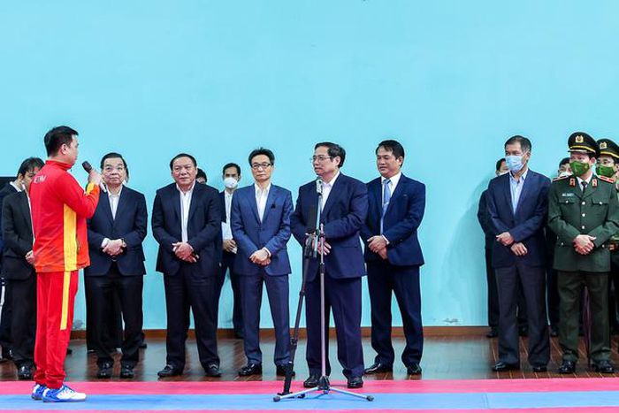 Tại Trung tâm Huấn luyện thể thao quốc gia Hà Nội, Thủ tướng thăm, động viên các đội tuyển của đoàn thể thao Việt Nam tham gia thi đấu tại SEA Games 31.