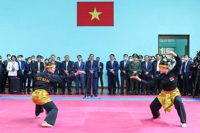 Thủ tướng và các đại biểu theo dõi các đội tuyển võ thuật thi đấu biểu diễn - Ảnh: VGP/Nhật Bắc