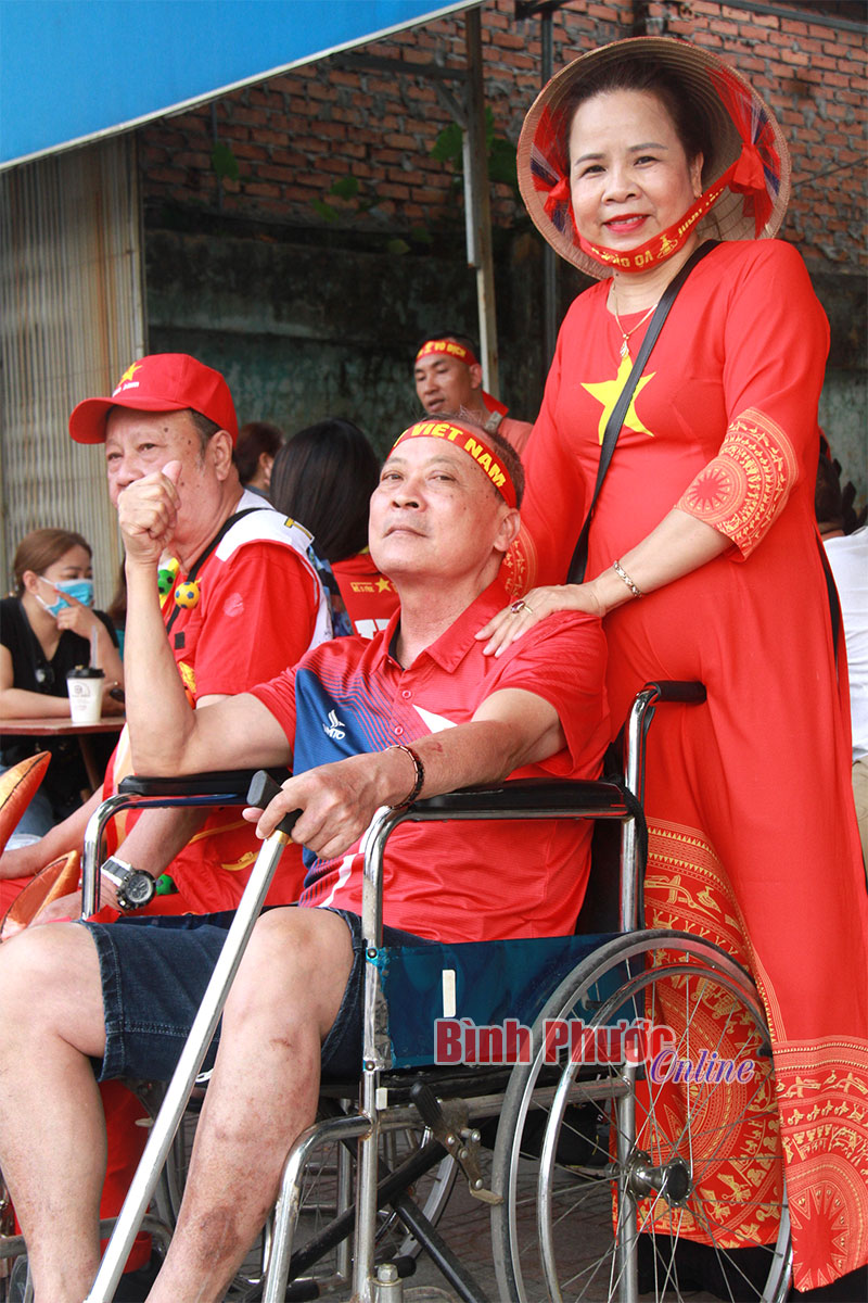 Dù bị thương tật phải ngồi xe lăn nhưng đã 2 trận liên tiếp của đội tuyển U23 Việt Nam tại SEA Games 31, ông Đinh Anh Tuấn ở tận Hà Nội cùng vợ vẫn lặn lội gần 100km lên Việt Trì, Phú Thọ để cỗ vũ thầy trò ông Park Hang Seo.