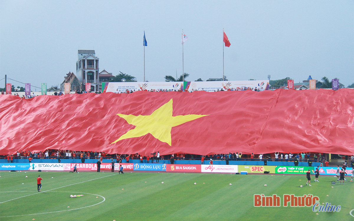 Lá đại kỳ Việt Nam cũng được kéo ra bên khán đài B nhằm tiếp thêm sức mạnh cho các cầu thủ