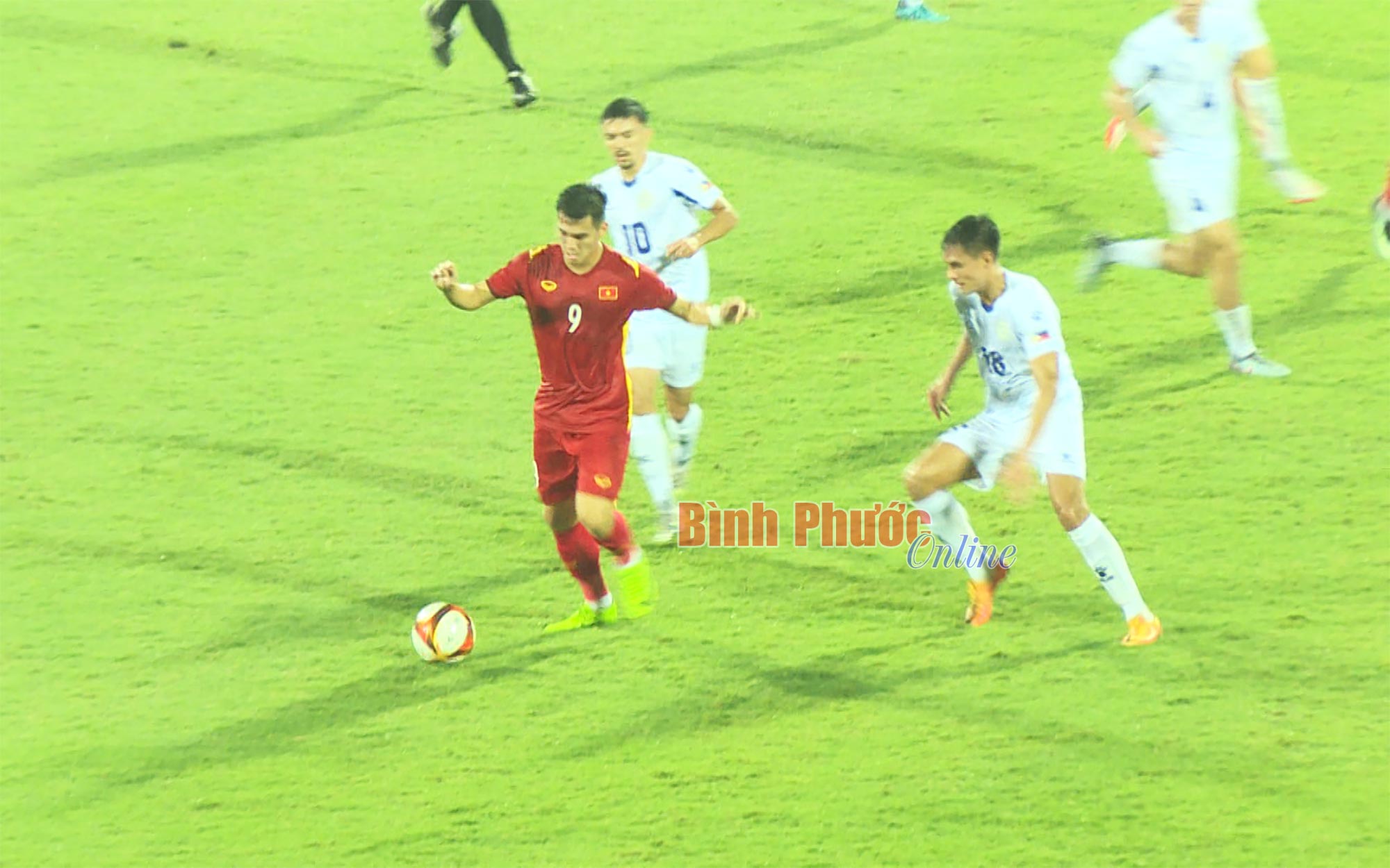 Tiến Linh dù rất nỗ lực dứt điểm những vẫn không một lần thành công trước hàng thủ của U23 Philippines