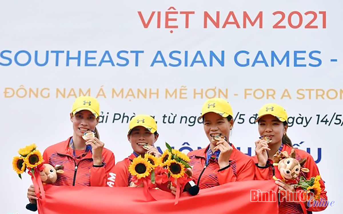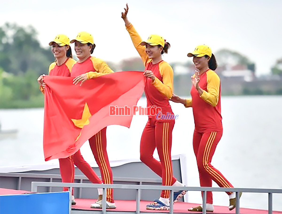 Tiếp đó, Phạm Thị Ngọc Anh, Lê Thị Hiền, Hà Thị Vui, Dư Thị Bông về nhất chung kết thuyền 4 nữ đơn mái chèo, với thời gian 7 phút 4 giây 058 để giành tấm HCV. Indonesia giành HCB còn Thái Lan nhận HCĐ.