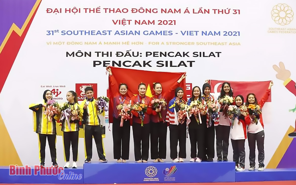 Niềm vui chiến thắng rạng rỡ trên bục nhận HCV của các võ sĩ Việt Nam - Ảnh: Trọng Hải