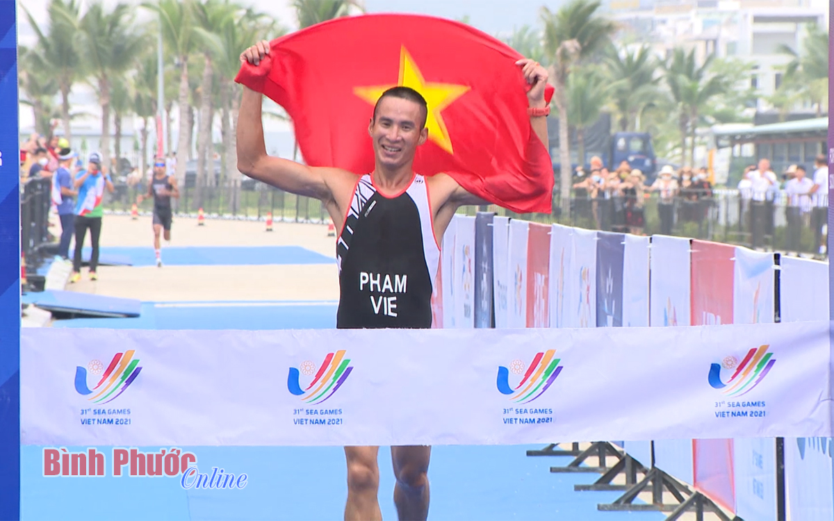 Sáng 15-5, VĐV Phạm Tiến Sản đã mang về tấm huy chương vàng đầu tiên trong ngày cho Đoàn thể thao Việt Nam, khi anh giành chiến thắng ở môn Duathlon (2 môn phối hợp).