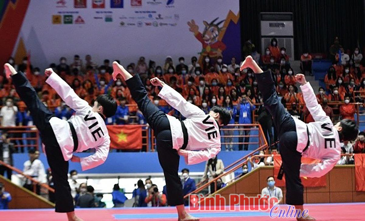 Taekwondo Việt Nam giành huy chương vàng ở nội dung quyền sáng tạo đồng đội nam nữ. Châu Tuyết Vân và đồng đội vượt qua đối thủ Philippines và Lào để chiến thắng.