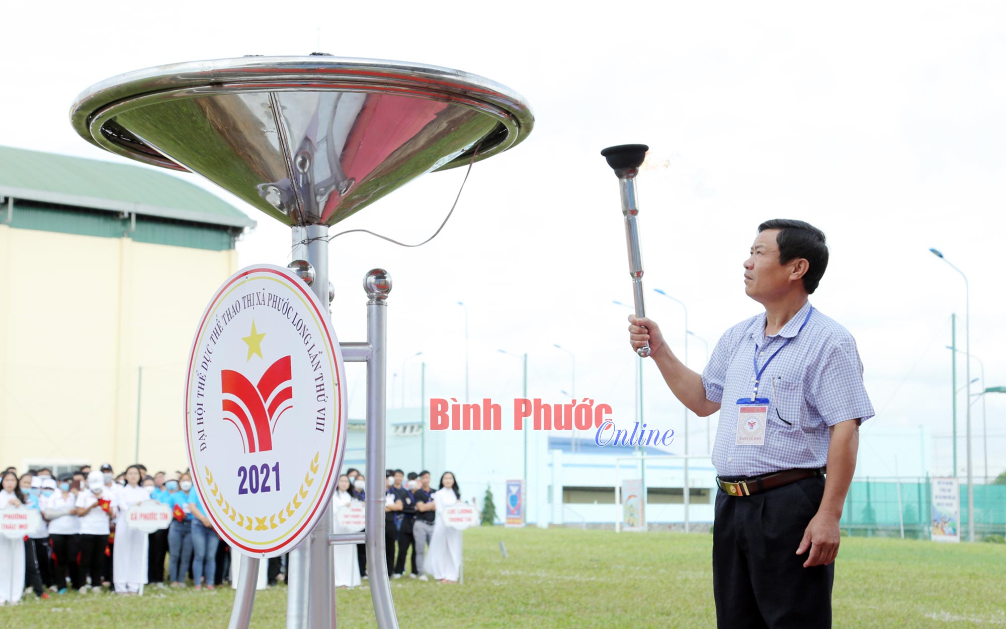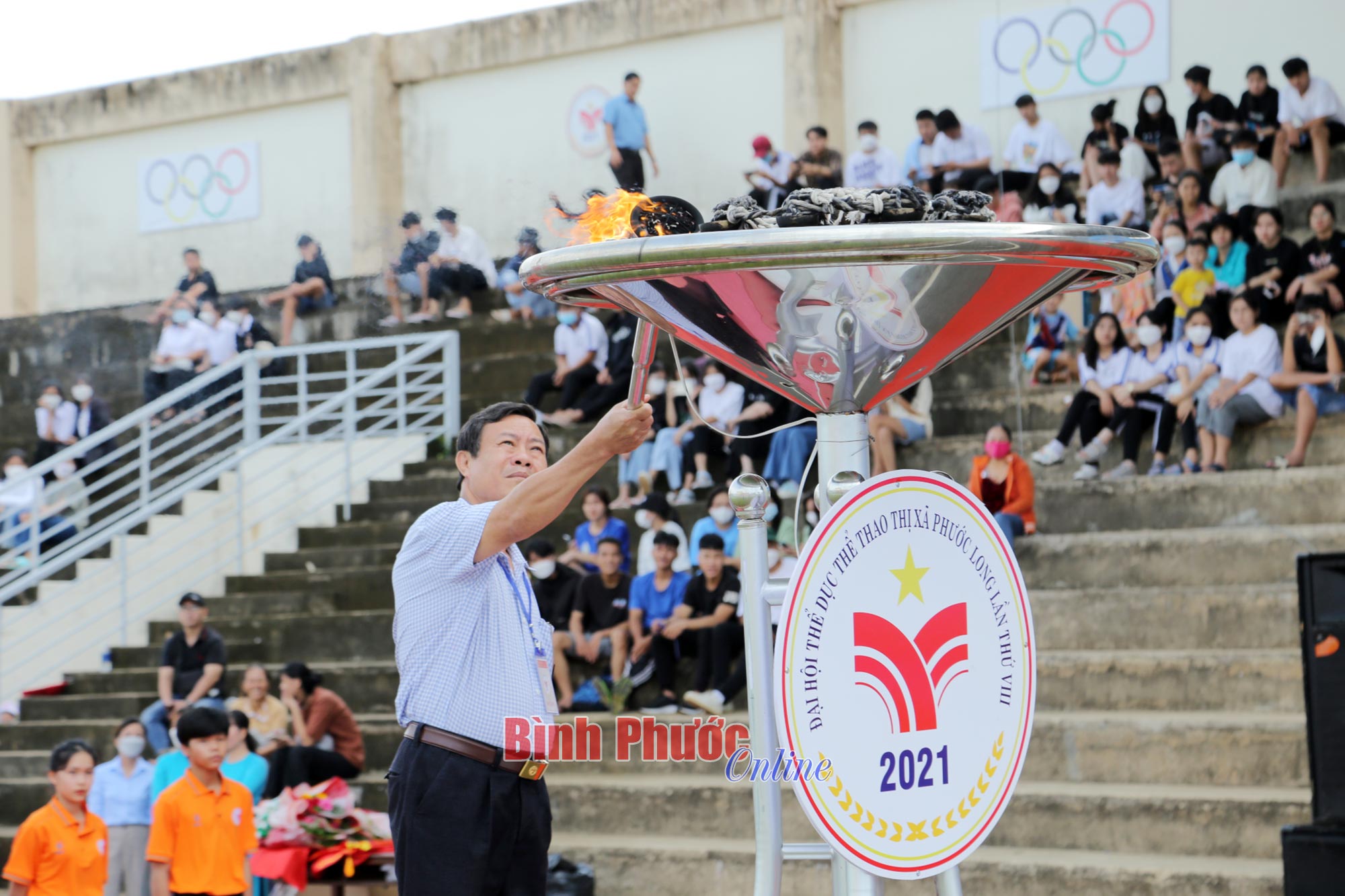 Phó bí thư Thị ủy, Chủ tịch HĐND thị xã Phước Long Lê Thanh Sơn thắp đuốc khai mạc đại hội