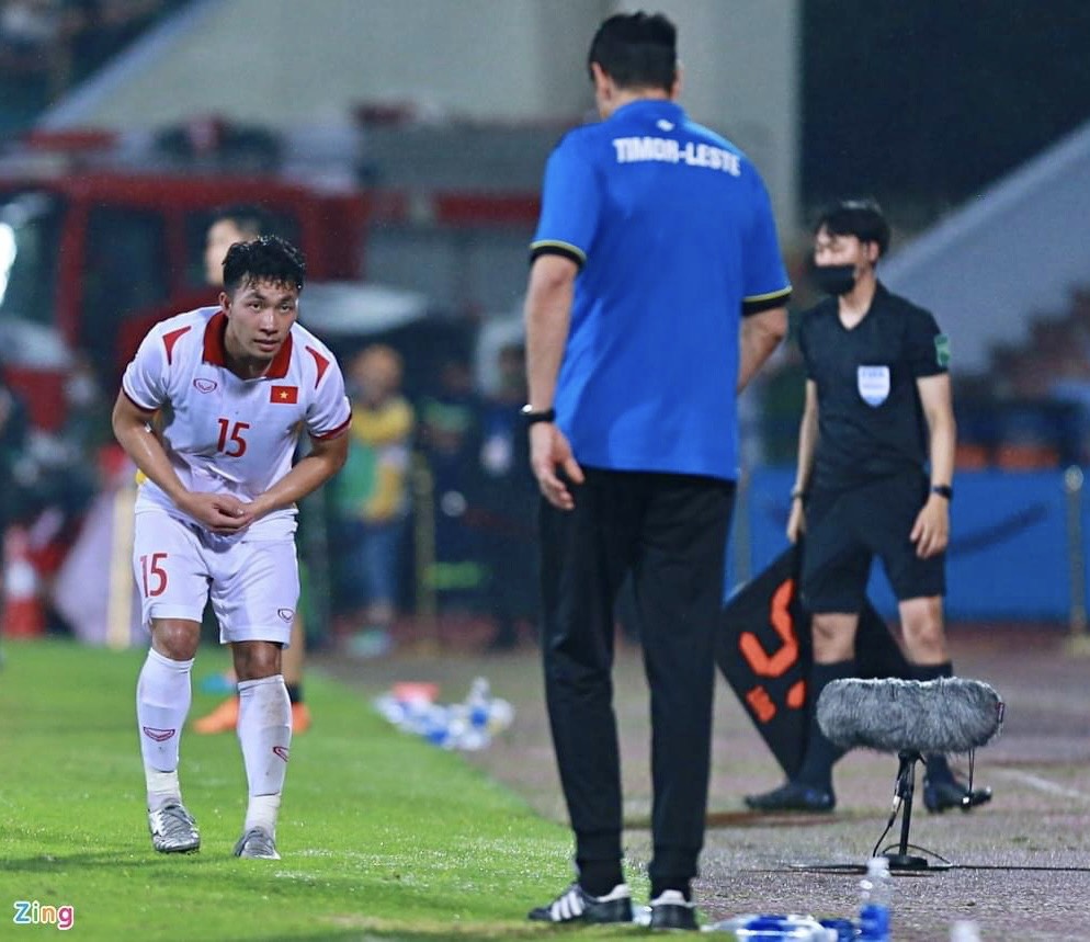 Tiền vệ Huỳnh Công Đến (15) U23 Việt Nam, sau khi được thay ra nghỉ trong trận đấu với U23 Timor Leste, anh đã cúi chào khán giả. Sau đó, anh chủ động đến bên khu kỹ thuật của đội bạn lễ phép chào HLV Fabio trước khi rời sân.