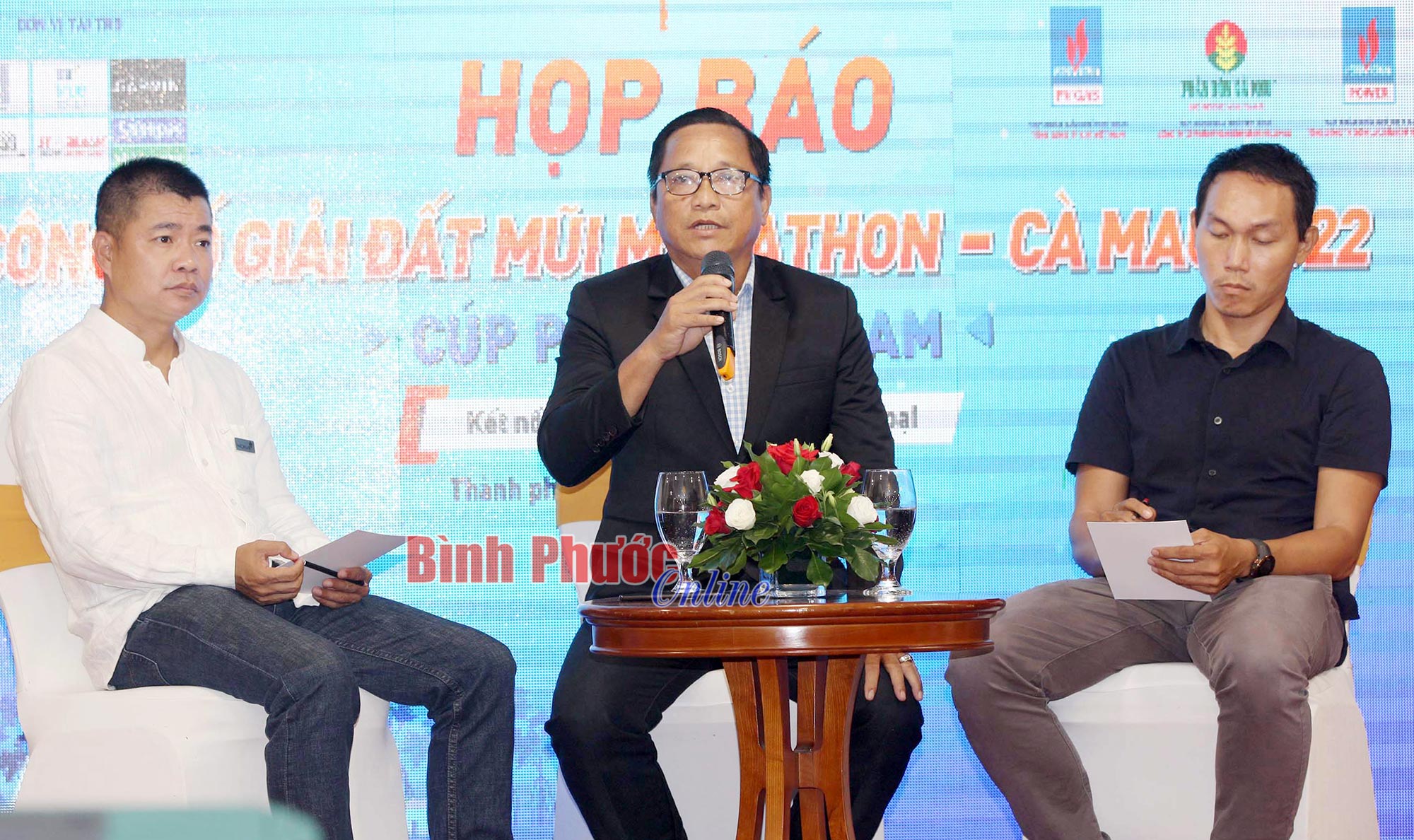Ông Tạ Hoàng Hiện, Phó giám đốc Sở Văn hóa - Thể thao và Du lịch Cà Mau trả lời báo chí về Giải Marathon Đất Mũi Cà Mau 2022 Cúp PetroVietNam