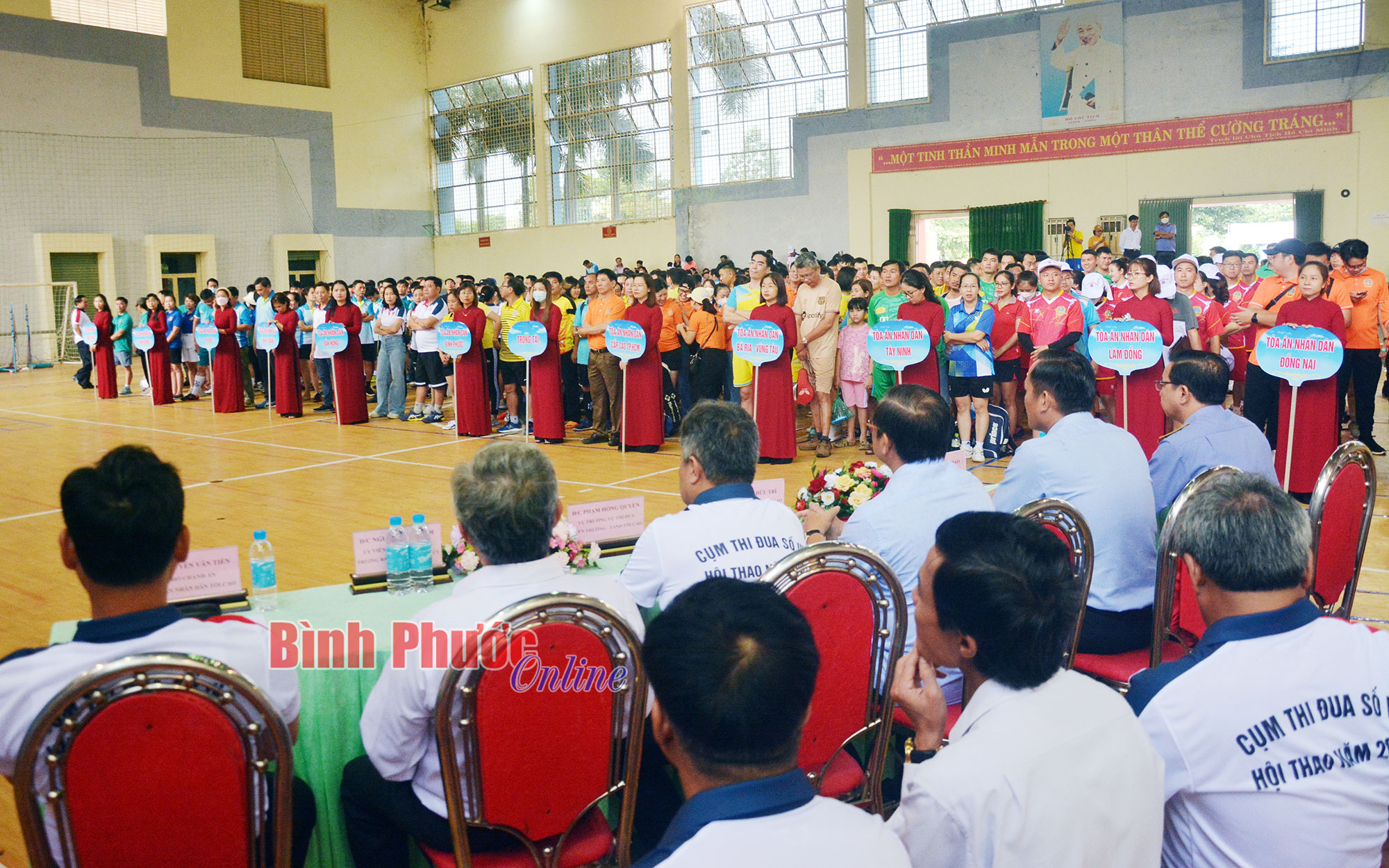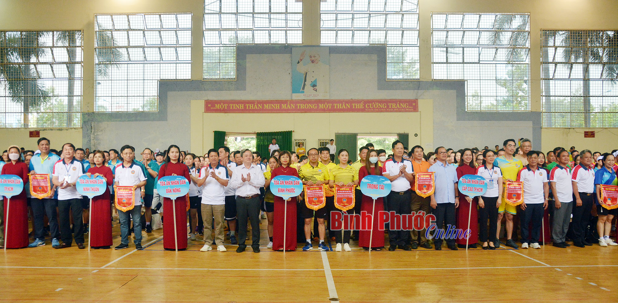 Tham dự có ông Nguyễn Văn Tiến, Phó chánh án Tòa án nhân dân cấp cao tại TP. Hồ Chí Minh; Phạm Hồng Quyền, Vụ trưởng Vụ thi đua khen thưởng Tòa án nhân dân tối cao; lãnh đạo các đơn vị tham dự hội thao. Lãnh đạo tỉnh có Ủy viên Ban Thường vụ, Trưởng ban Nội chính Tỉnh ủy Nguyễn Minh Hợi; Phó bí thư Thành ủy, Chủ tịch UBND thành phố Đồng Xoài Nguyễn Minh Bình; cùng đông đảo vận động viên (VĐV) là công chức, viên chức, người lao động các đơn vị Cụm thi đua số 4.