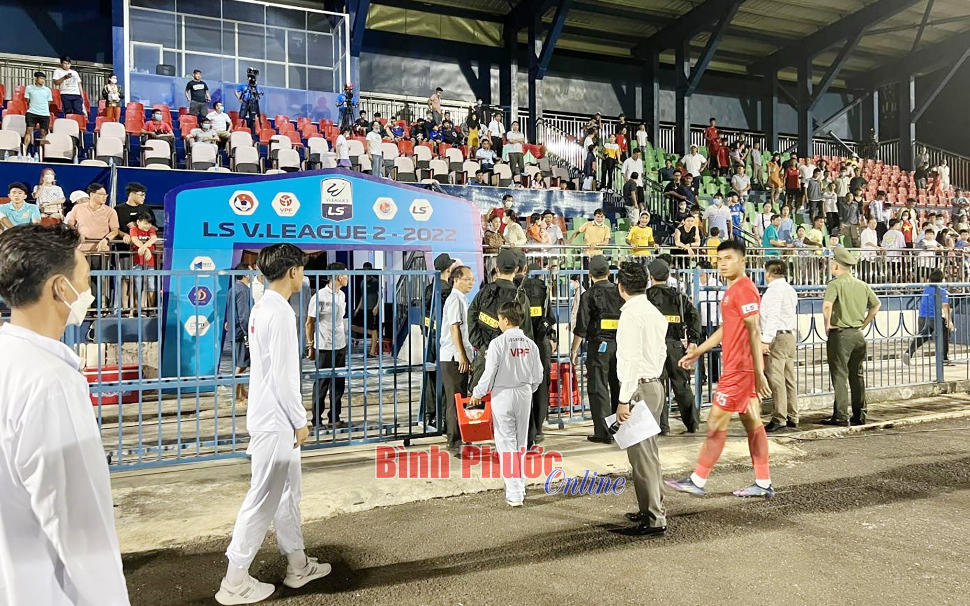 CLB Bình Phước nhận thất bại chung cuộc với tỷ số 1-2. Sau trận đấu, Ban huấn luyện đã lao vào sân thể hiện sự bất bình với quyết định của trọng tài ở trận đấu này. Trọng tài Lê Đức Thuận rút thẻ đỏ với trợ lý Nguyễn Văn Đứng. Tuy vậy, người bị nhận thẻ đỏ lại là nhân viên vật lý trị liệu Nguyễn Xuân Sơn.