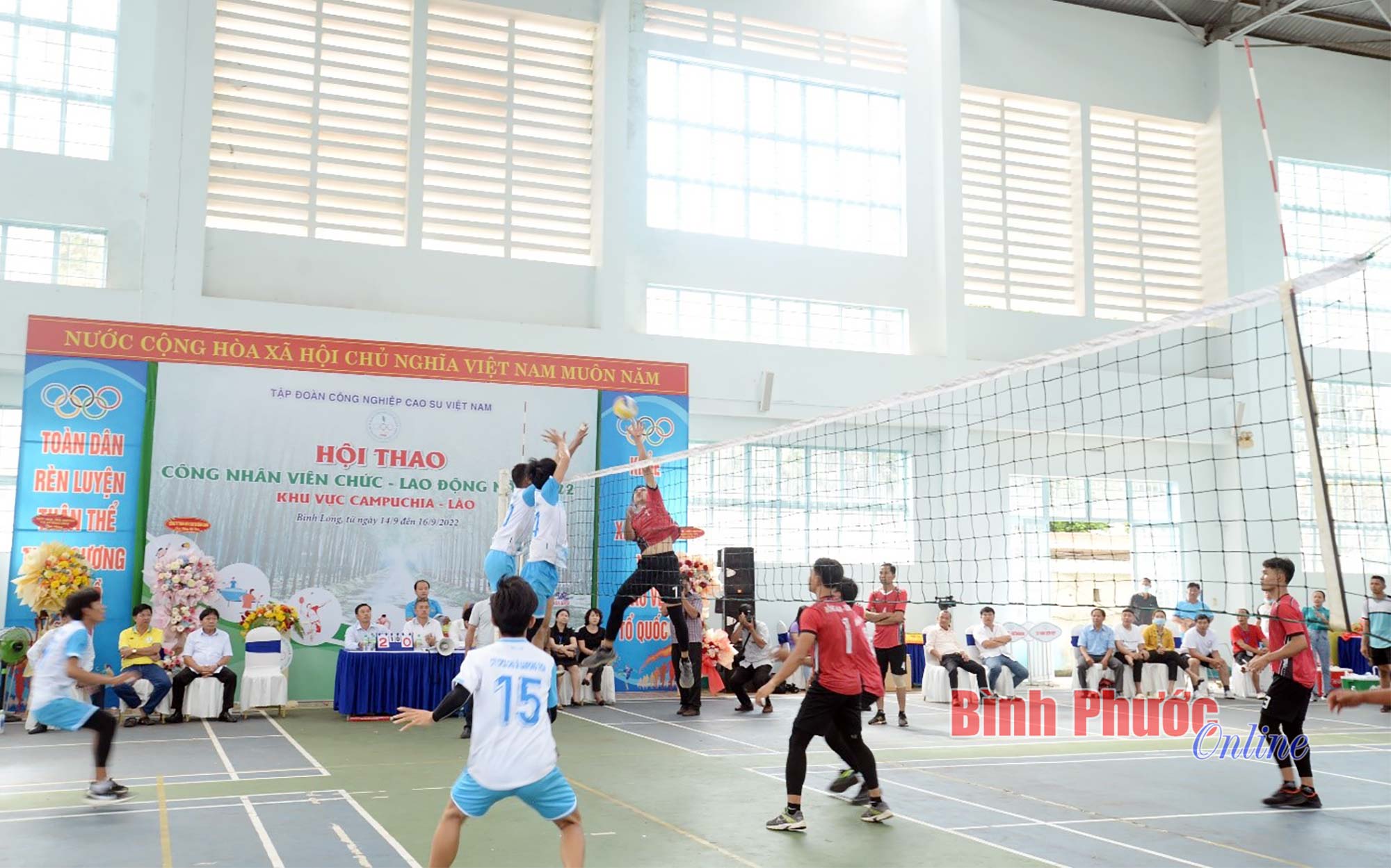 Trận chung kết bóng chuyền giữa đội Công ty Cao su Đồng Nai - Karatie (áo đỏ) và đội Công ty cổ phần Cao su Chư Sê - Kampong Thom