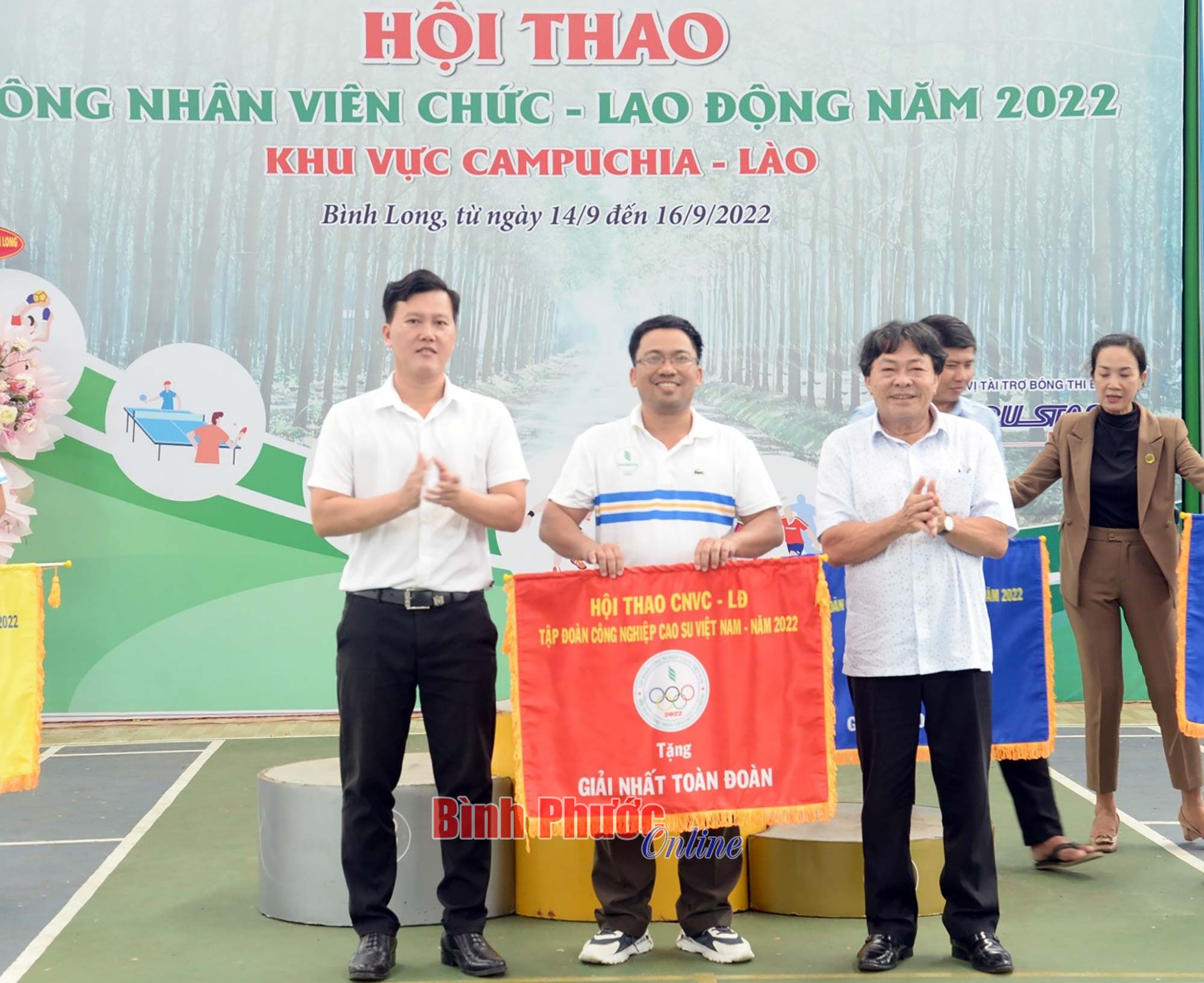 Tại lễ bế mạc, Ban tổ chức đã trao 12 bộ huy chương cho các vận động viên, tập thể đạt thành tích xuất sắc của từng nội dung thi đấu. Trong đó, giải nhất toàn đoàn thuộc về Công ty Cao su Krông Buk - RATTANAKIRI.