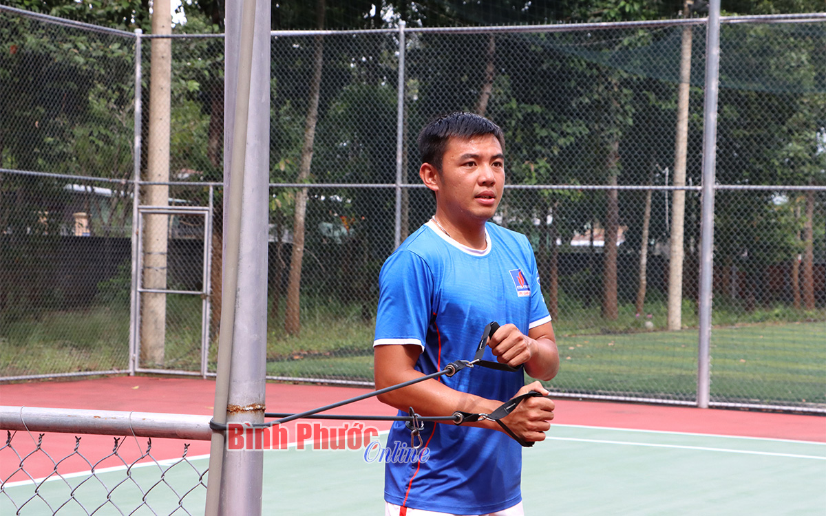 Tay vợt số 1 Việt Nam Lý Hoàng Nam khởi động trước trận đấu