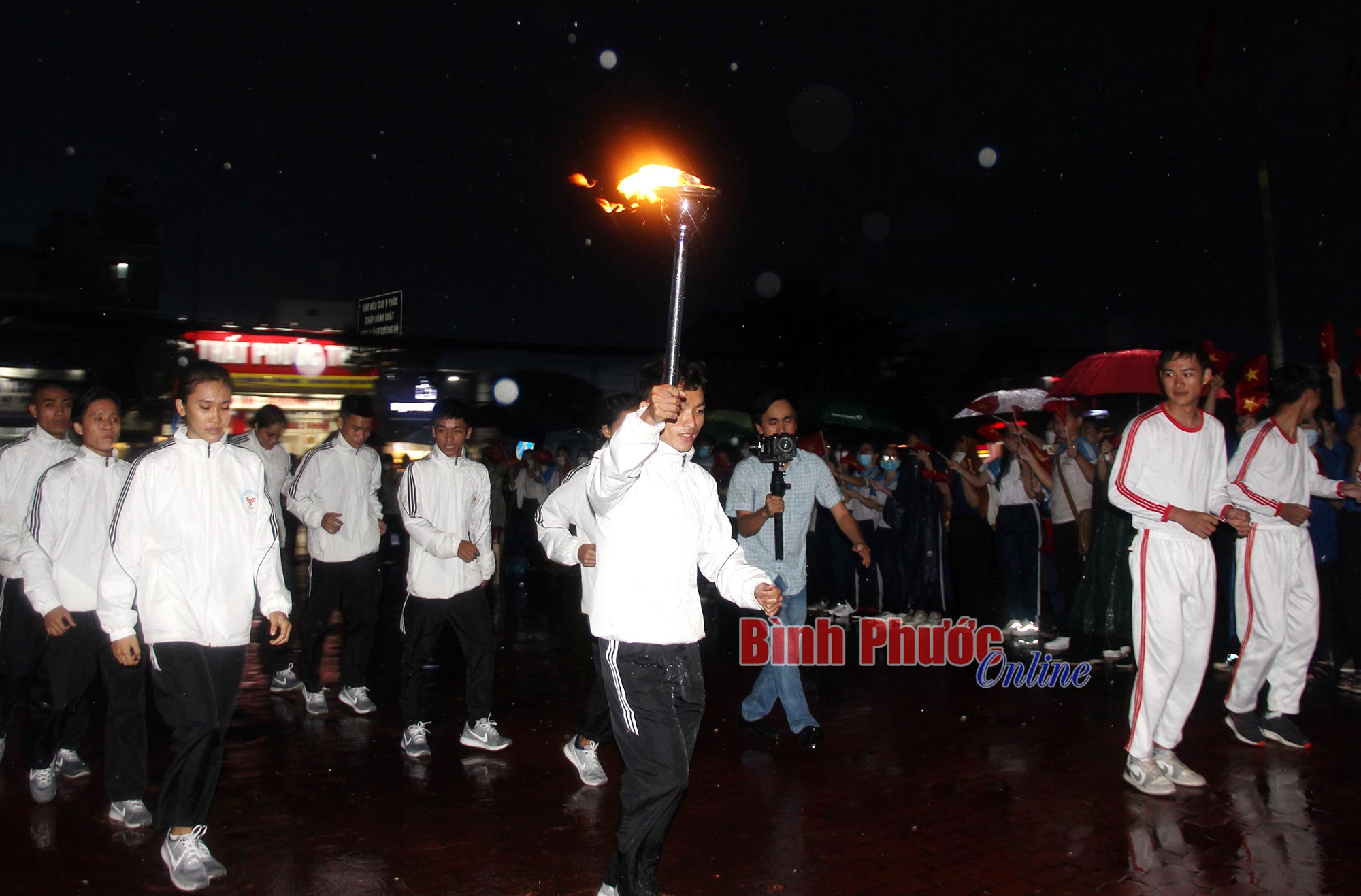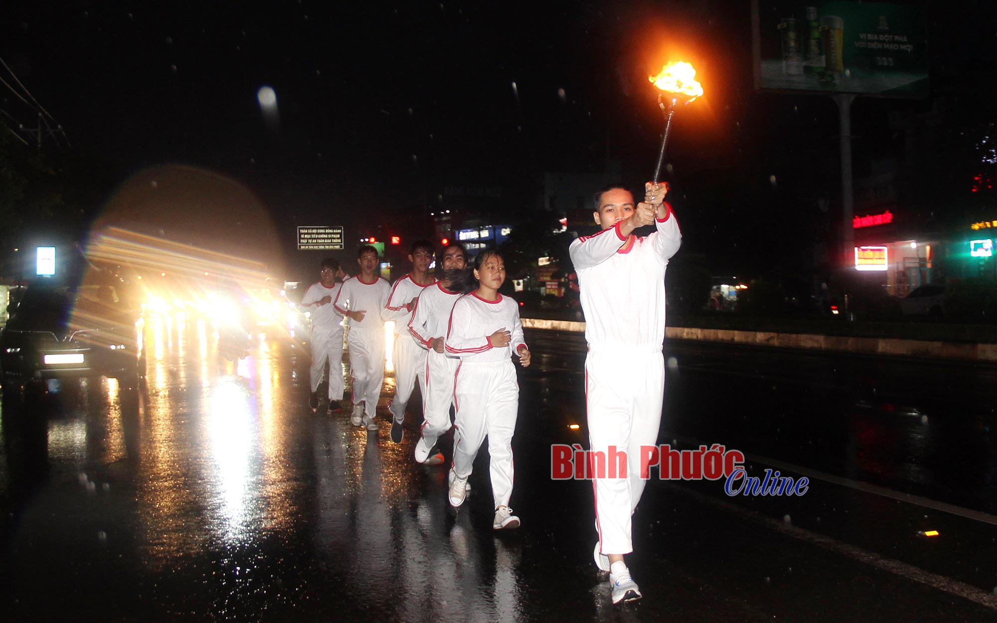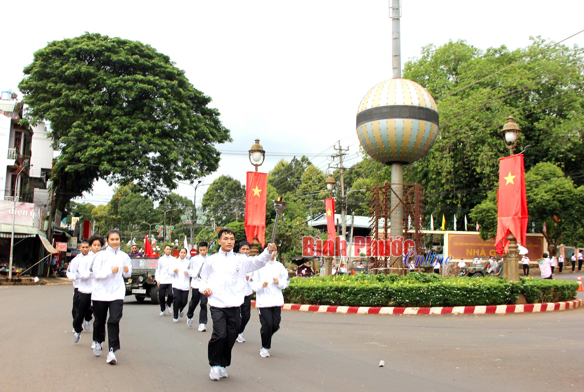 Ngọn đuốc đã được đoàn VĐV hộ tống tiến vào Quảng trường 6-1, thị xã Phước Long