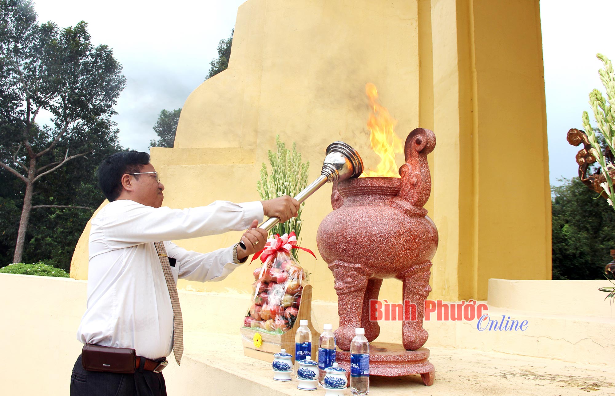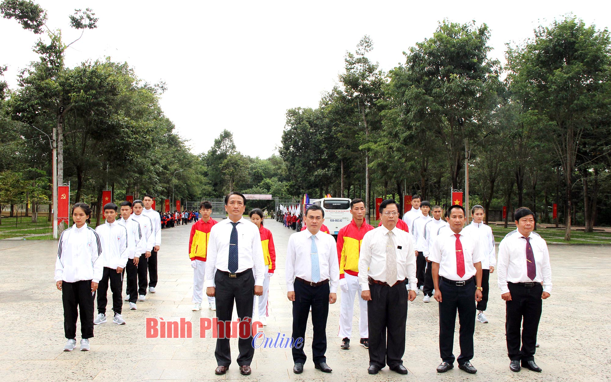 Ban tổ chức đại hội và lãnh đạo huyện Lộc Ninh cùng đoàn rước đuốc dâng hương tưởng niệm các anh hùng liệt sĩ tại Khu di tích Quốc gia đặc biệt Căn cứ Bộ chỉ huy Quân giải phóng miền Nam Việt Nam (Lộc Ninh)