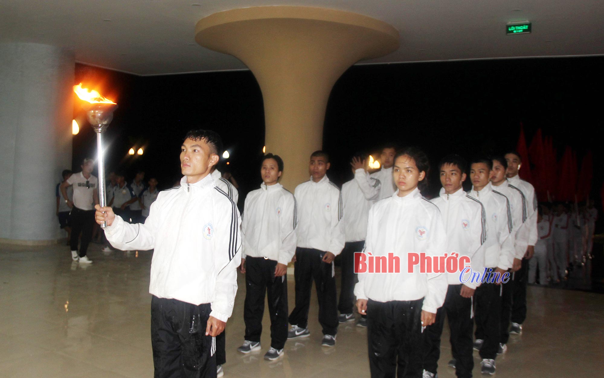Ngọn đuốc được hộ tống về đến sảnh Nhà thi đấu đa năng, kết thúc hành trình xin lửa và rước đuốc đầy rực rỡ với nhiều cảm xúc tại kỳ Đại hội Thể dục thể thao tỉnh Bình Phước lần thứ VI.