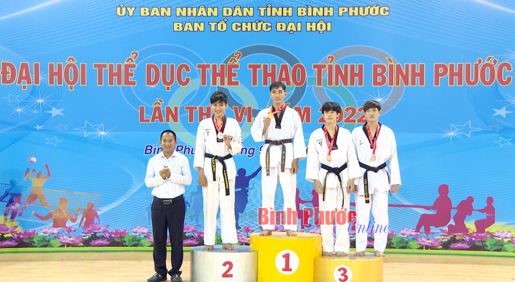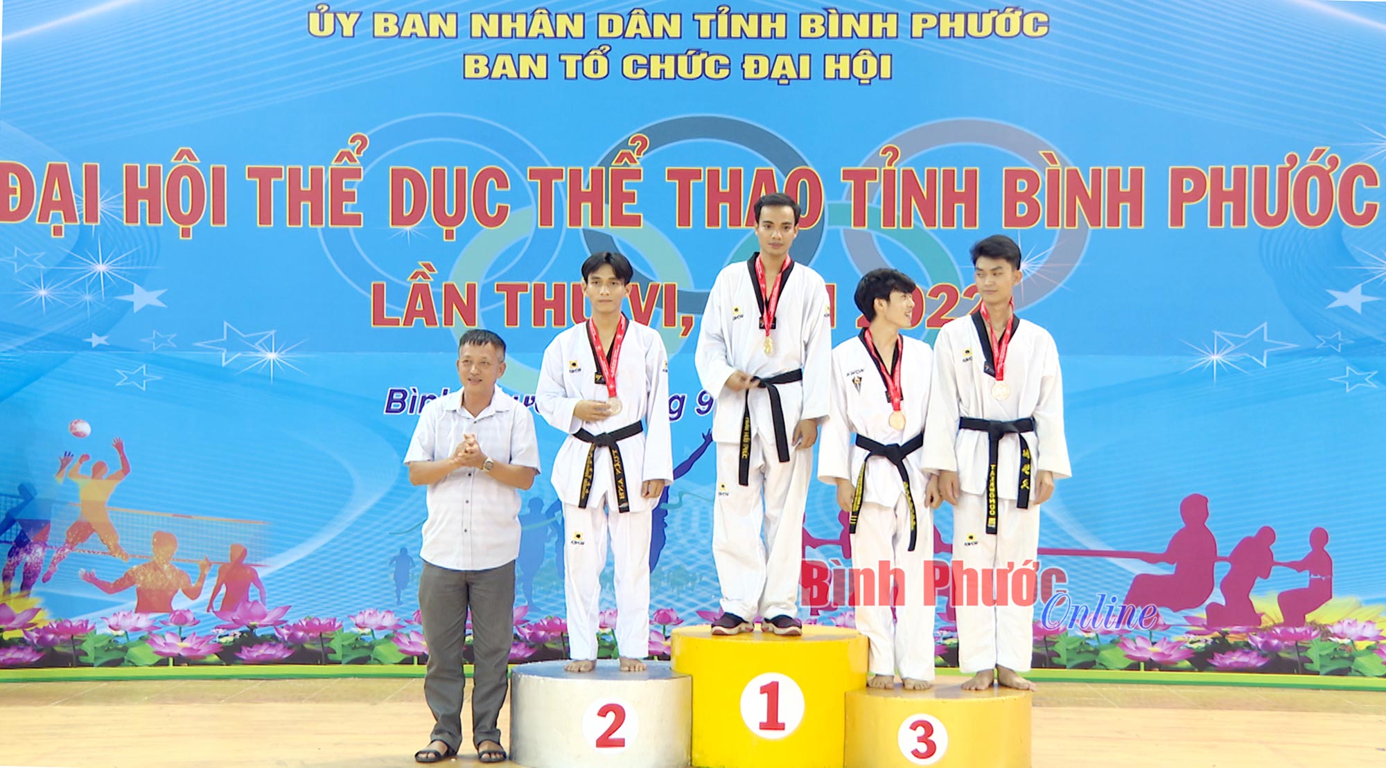 Nội dung võ Taekwondo với 13 hạng cân, trong đó có 7 hạng cân nữ và 6 hạng cân nam. Kết quả ở hạng cân nữ, Phước Long và Hớn Quản mỗi đơn vị đều giành được 3 huy chương vàng, Bù Gia Mập đoạt được 1 huy chương vàng. Ở hạng cân nam, Bù Đốp xuất sắc giành được 2 huy chương vàng; Đồng Xoài, Phú Riềng, Bình Long, Công an tỉnh mỗi đơn vị đoạt được 1 huy chương vàng.