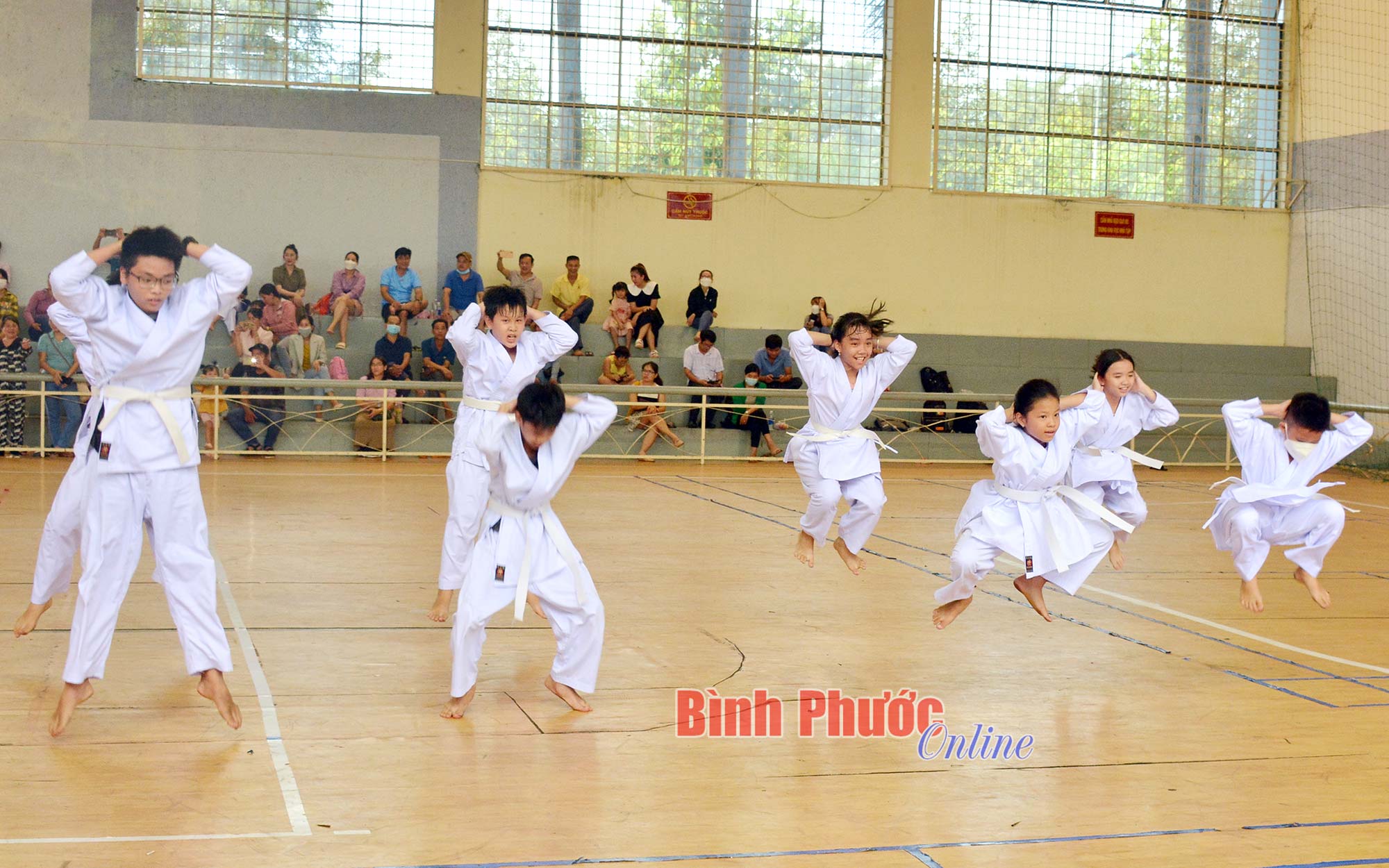 Kỳ thi thăng cấp đai lần I cấp thành phố quy tụ hơn 160 võ sinh của 5 câu lạc bộ thành phố Đồng Xoài. Dự kỳ thi thăng cấp đai, các võ sinh phải hoàn thành các nội dung thi quyền - kata, đối luyện - kihon, kỹ thuật căn bản và thể lực.