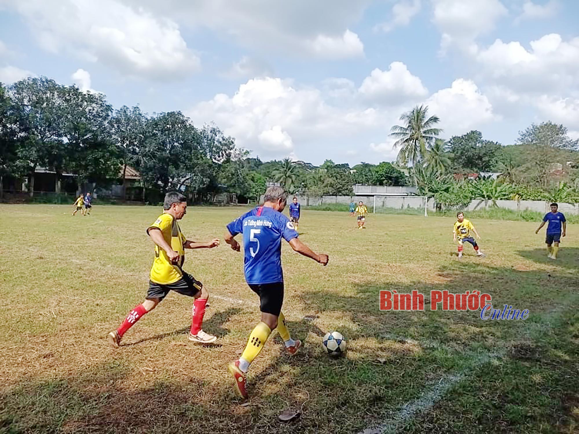 Đội bóng đá lão tướng Nông trường Minh Hưng (áo xanh) đã xuất sắc đoạt giải nhất