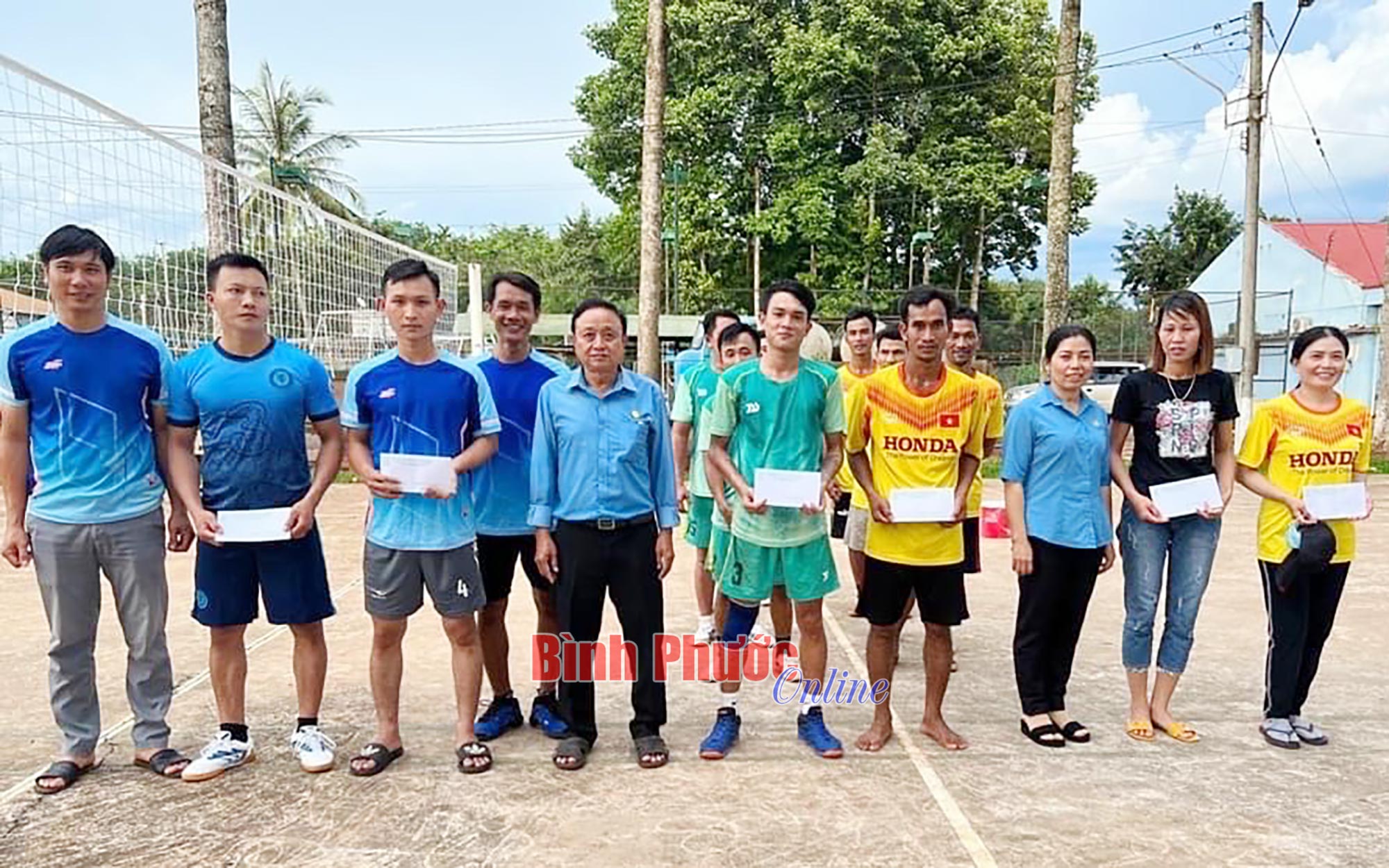 Đại diện Nông trường Lợi Hưng trao giải nội bộ môn bóng chuyền