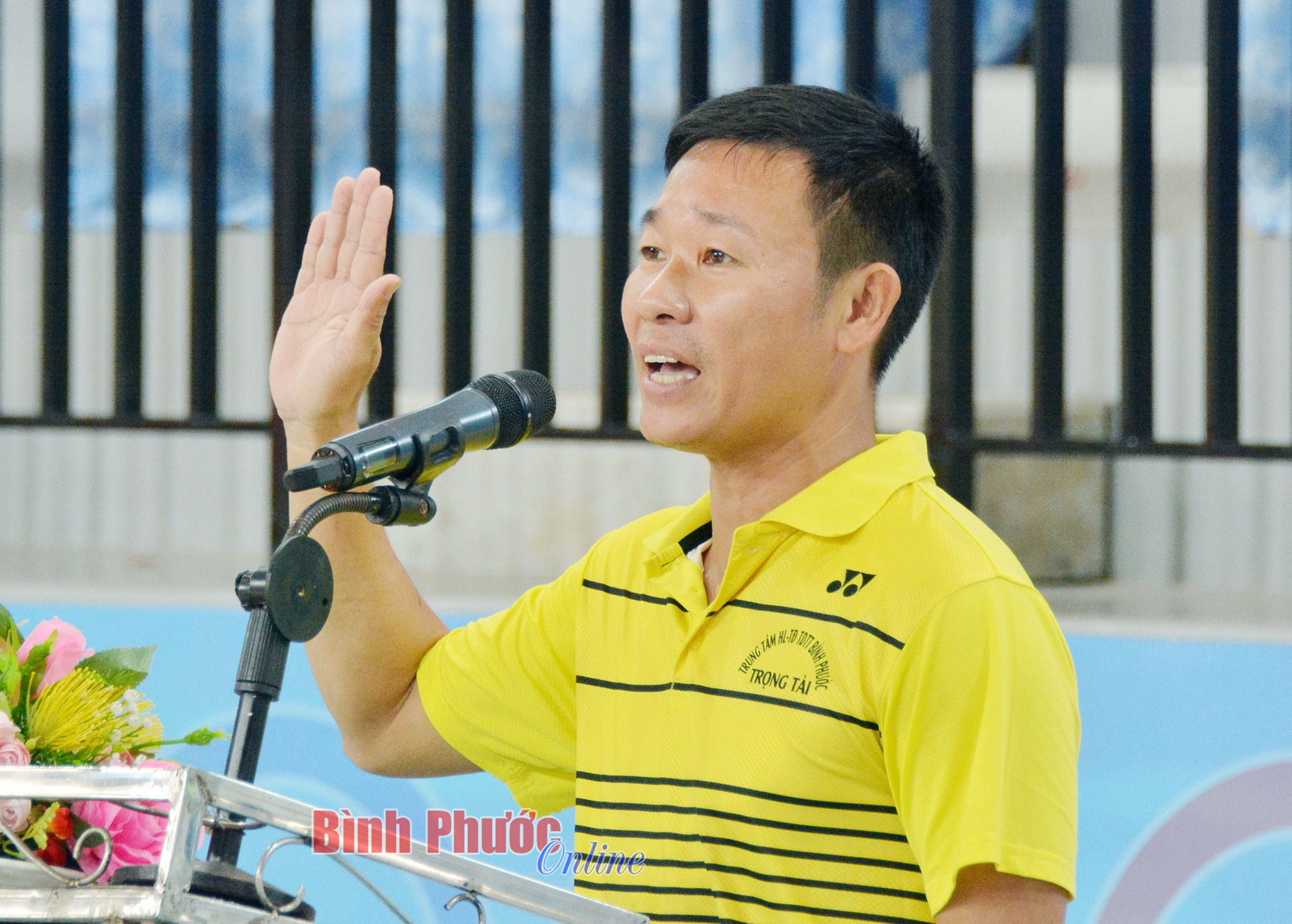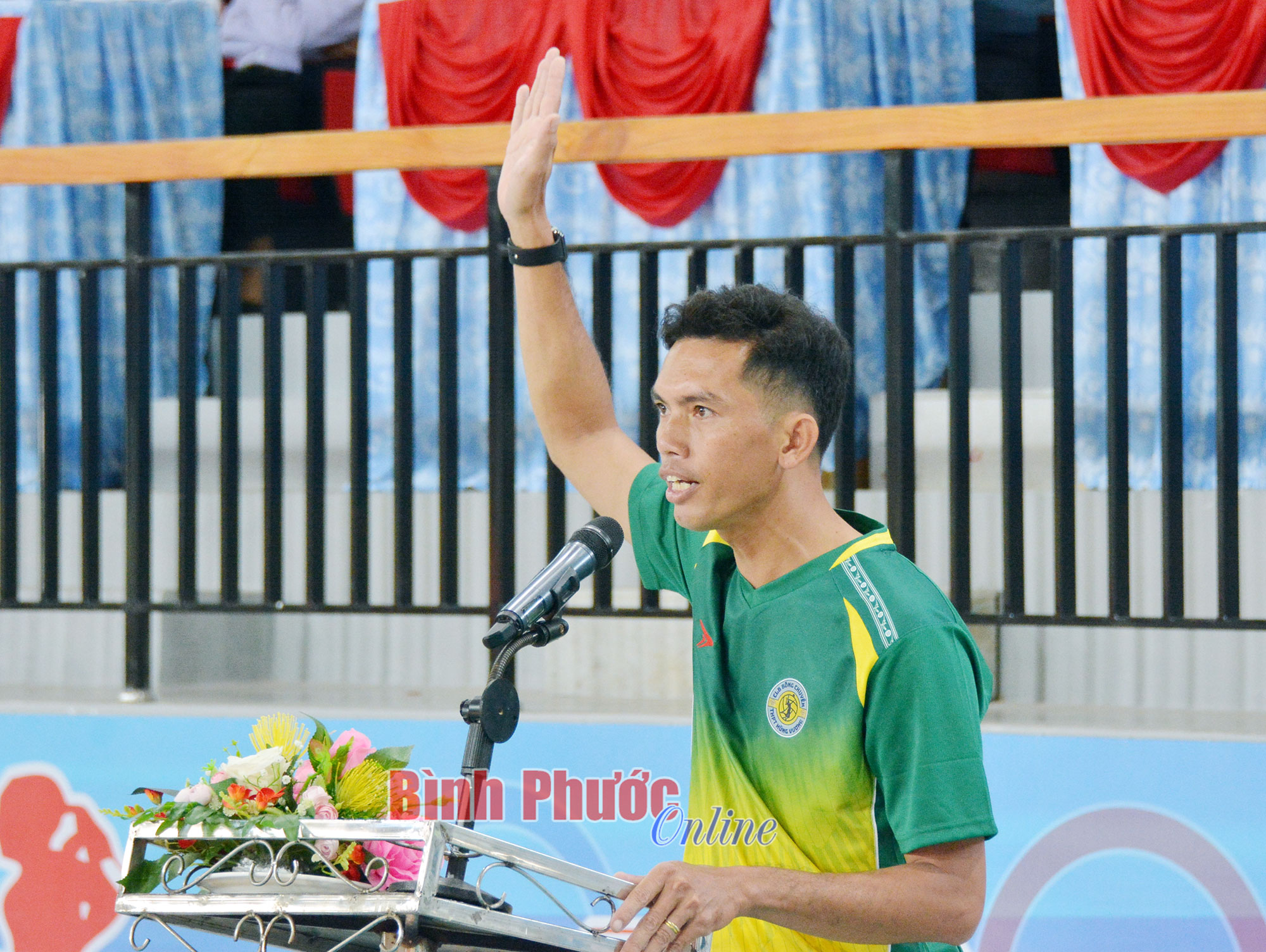 Vận động viên Trần Tý, đơn vị Trường THPT Hùng Vương, (TP. Đồng Xoài) thay mặt các vận động viên cam kết thi đấu tích cực với tinh thần cao thượng, vì sự tiến bộ của thể thao