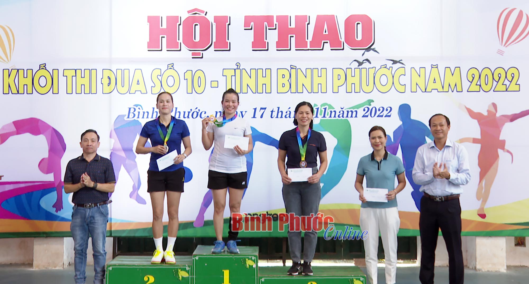 Nội dung cầu lông đơn nữ: Vận động viên Dương Thị Tuyết của Công ty TNHH MTV cao su Phú Riềng xuất sắc đoạt giải nhất; Lê Thị Bích Phương của Công ty Điện lực Bình Phước đoạt giải nhì; Lương Thị Diên thuộc Công ty TNHH MTV cao su Phú Riềng đoạt giải ba; giải khuyến khích thuộc về vận động viên Dương Thị Tuân của Công ty cổ phần Thủy điện Cần Đơn.