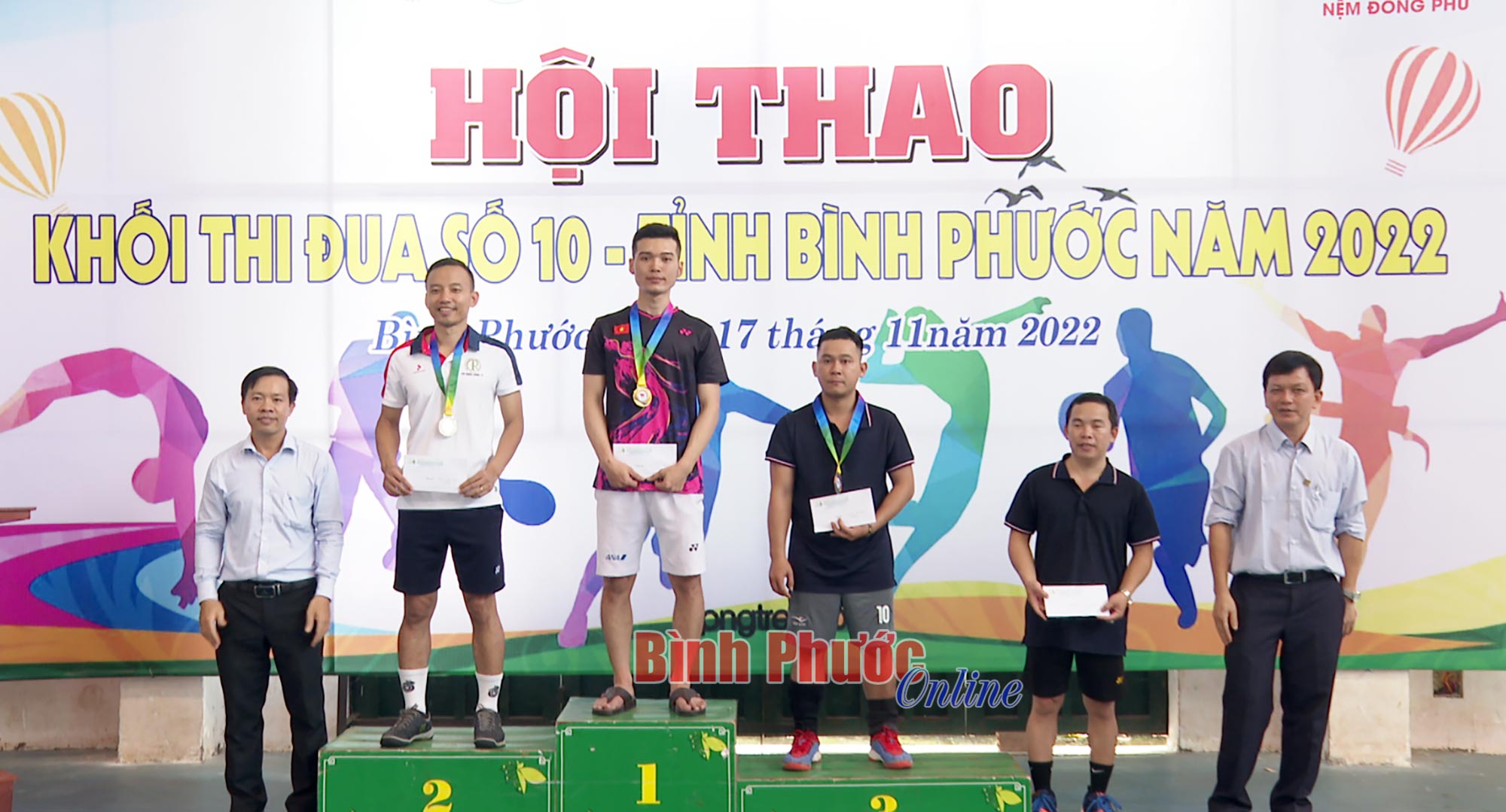 Kết thúc hội thao, nội dung cầu lông đơn nam: Vận động viên Nguyễn Phú Cường của Công ty cổ phần Thủy điện Thác Mơ xuất sắc đoạt giải nhất; Phan Đình Dũng của Công ty TNHH MTV cao su Phú Riềng đoạt giải nhì; Lê Ngọc Thảo của Viettel Bình Phước đoạt giải ba.