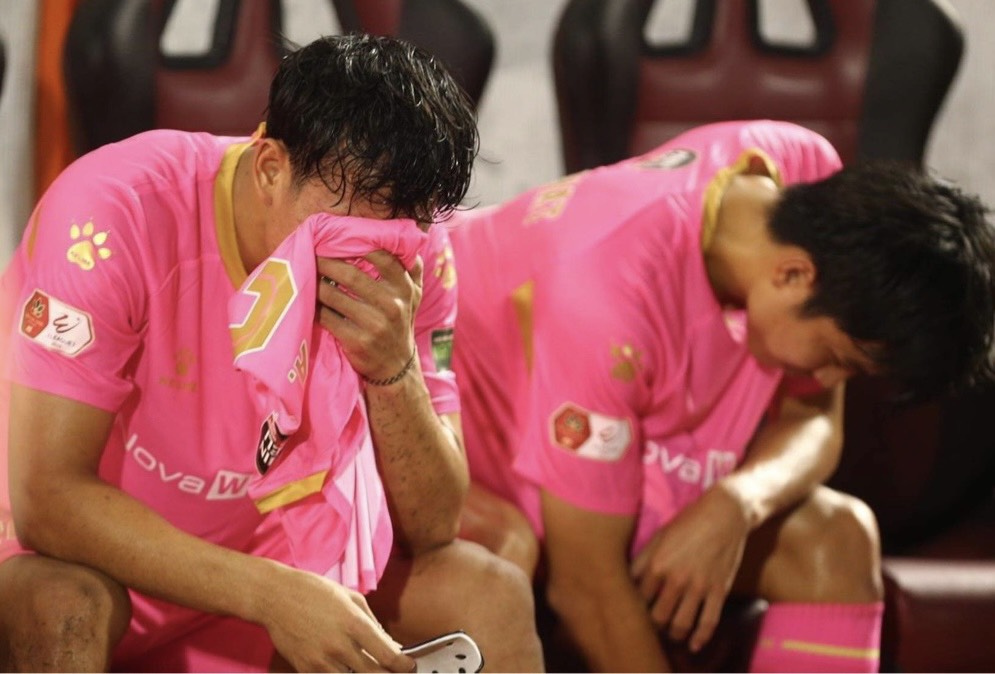 Các cầu thủ CLB Sài Gòn buồn bã, thất vọng sau khi đội nhà chính thức rớt hạng
