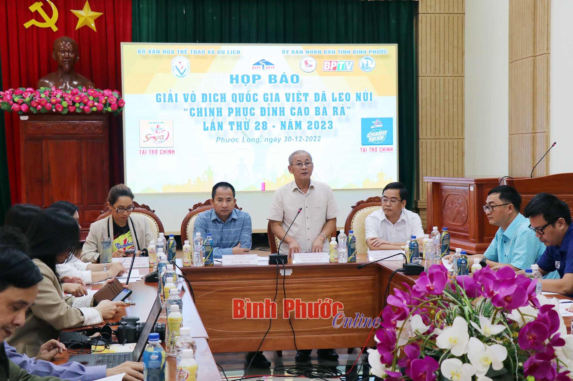 Phó Giám đốc Sở Văn hóa - Thể thao và Du lịch tỉnh Bình Phước Trần Thế Anh thông tin thêm những nét mới của giải và công bố logo, bài hát chính thức của giải